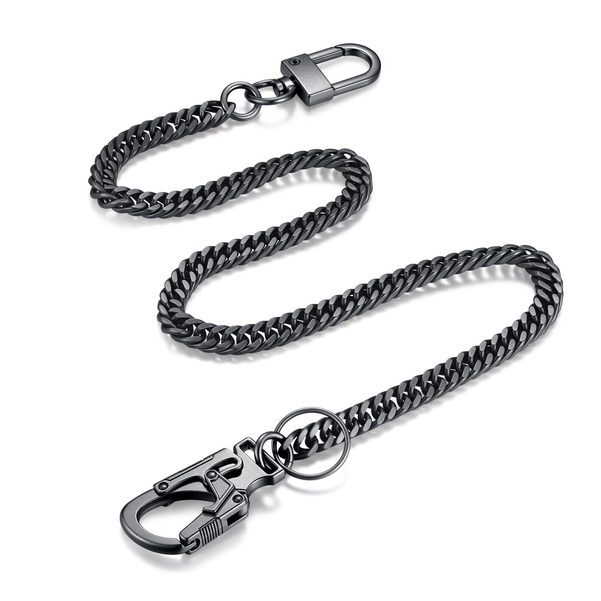 【数量限定】[Ahiller] ウォレットチェーン 小型ダブルロック式カラビナステンレスキーホルダー。パンツ、財布、車のキー、ハンドバッグに最適