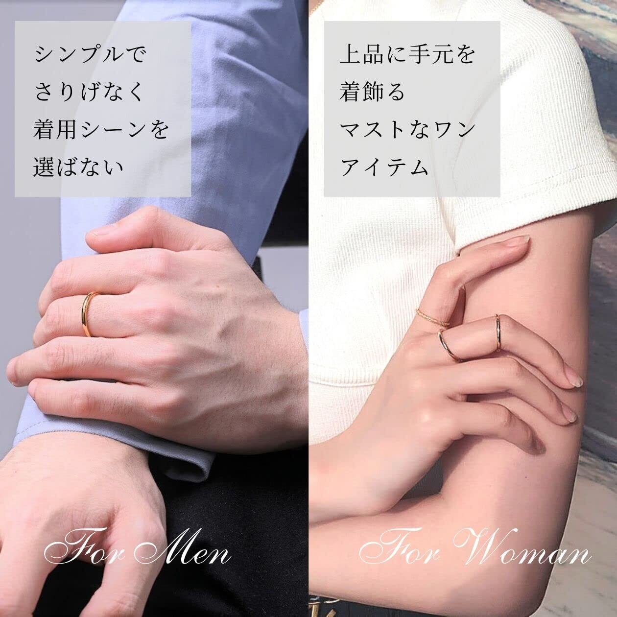 【人気のシンプルデザイン】シンプルで丸みのある甲丸デザイン。指輪の幅のサイズは2mm。細身で主張しすぎないサイズのため、オフィスカジュアルから普段使い、結婚式、パーティーなどのドレスアップスタイル、様々なシーンでご使用いただける人気のファッションリングです。またユニセックスデザインのため、男性にも女性にもおすすめです。