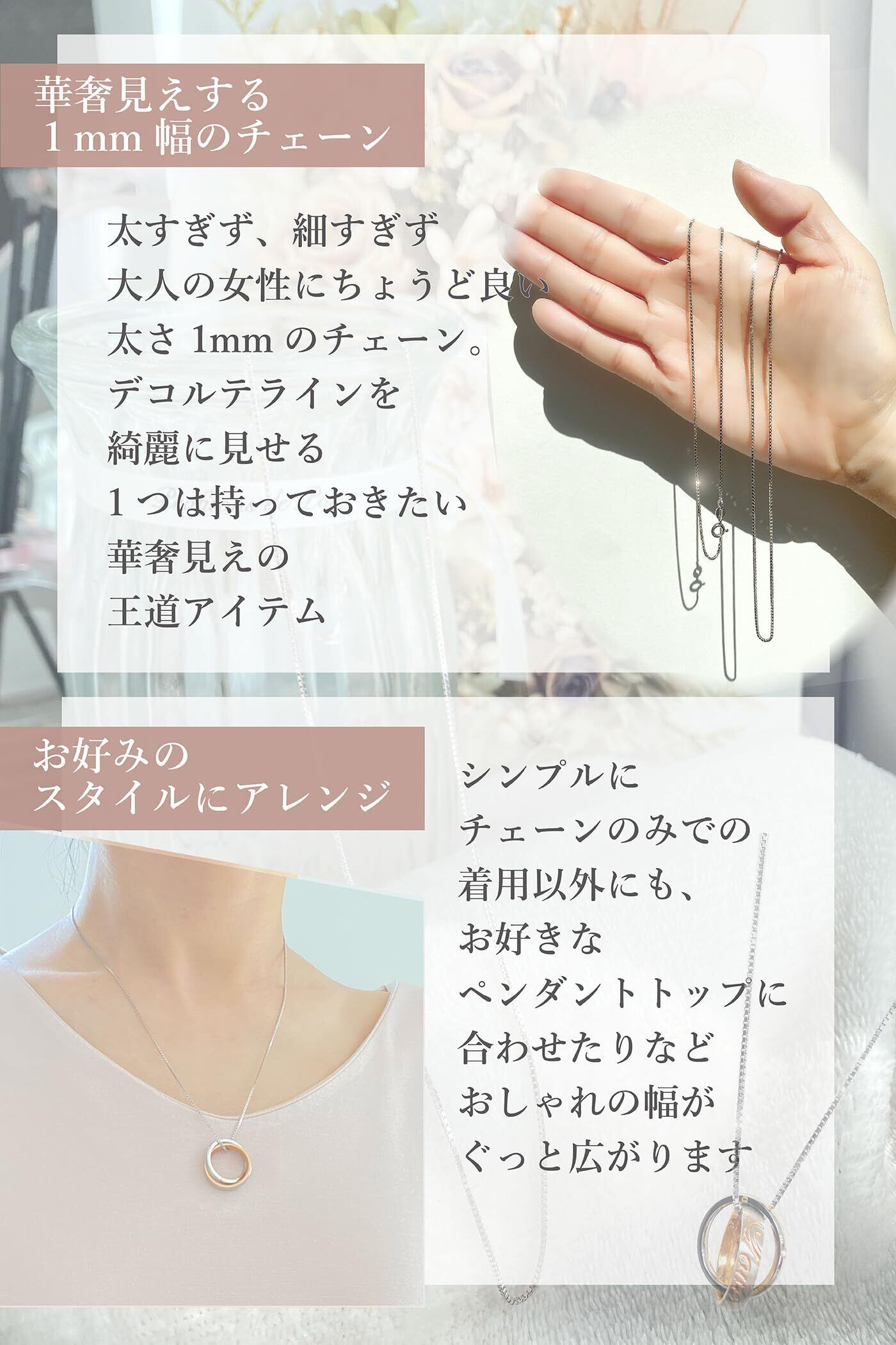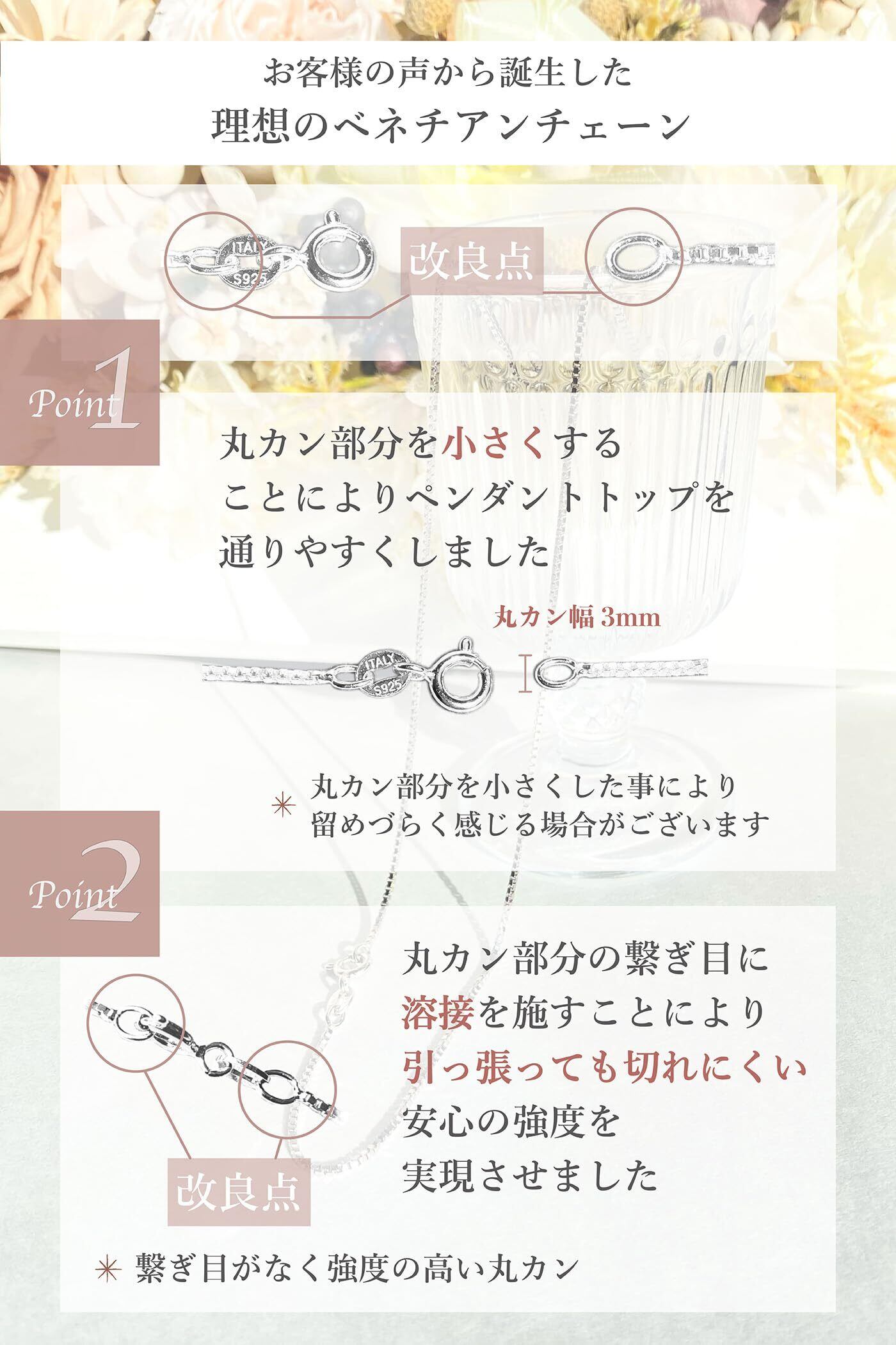 【シルバー925 ベネチアンチェーン】ネックレスチェーンの人気アイテム!チェーン の太さは1mm、長さは40/45/50cmの3種からお選びいただけます。留め具はつけやすく丈夫な「引き輪タイプ」・「925」刻印入りです。細すぎず、太すぎないちょうどいい太さです。存在感があり「華奢見え」効果も。首元を豪華に演出します。