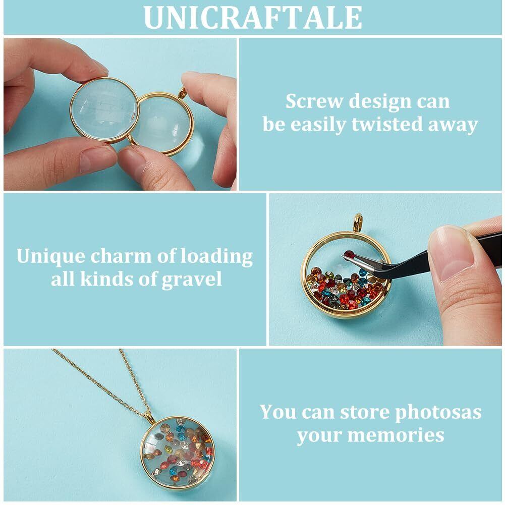 【人気商品】UNICRAFTALE リアル18Kゴールドメッキメモリーロケットチャーム ステンレススチール フラット ラウンド DIY ピクチャーフォトネックレス製作キット クリスタルロケットペンダント ガラスフローティングチャーム ジュエリー製作用, 29/34mm Wide, ステンレス鋼, 宝石なし