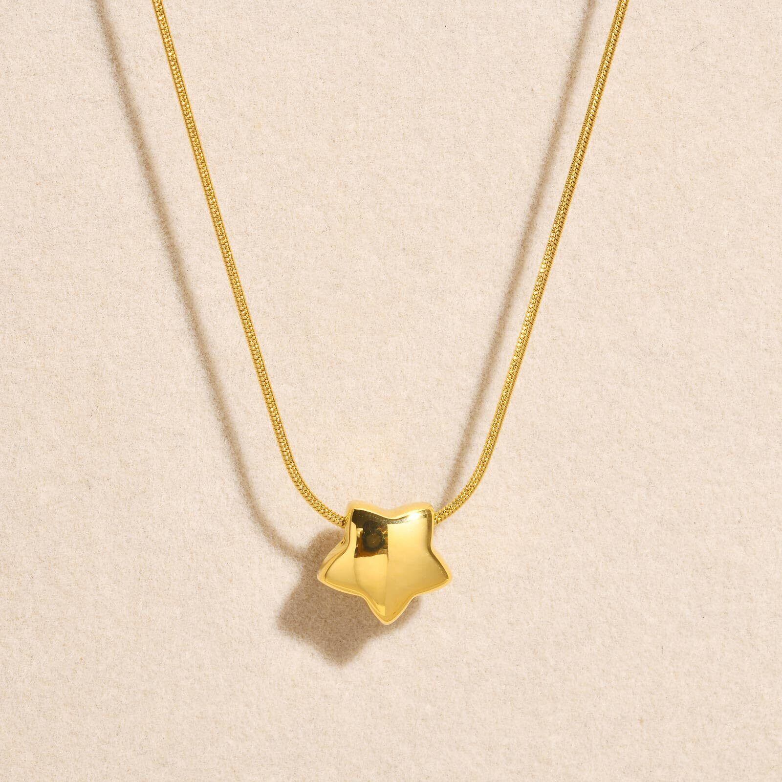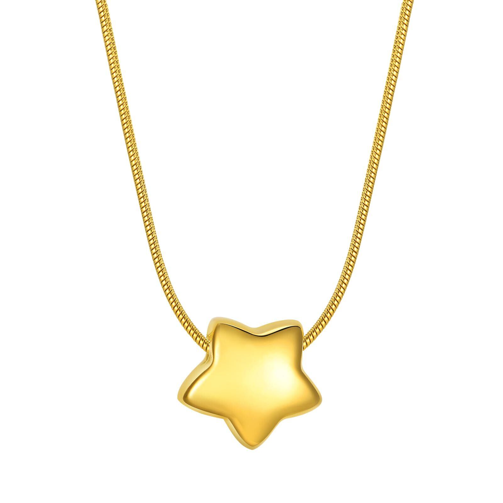 [Rockyu] ネックレス レディース ゴールド スターペンダント ステンレススチール IPゴールドメッキ シンプルデザイン ファッションジュエリー 45cmチェーン付き