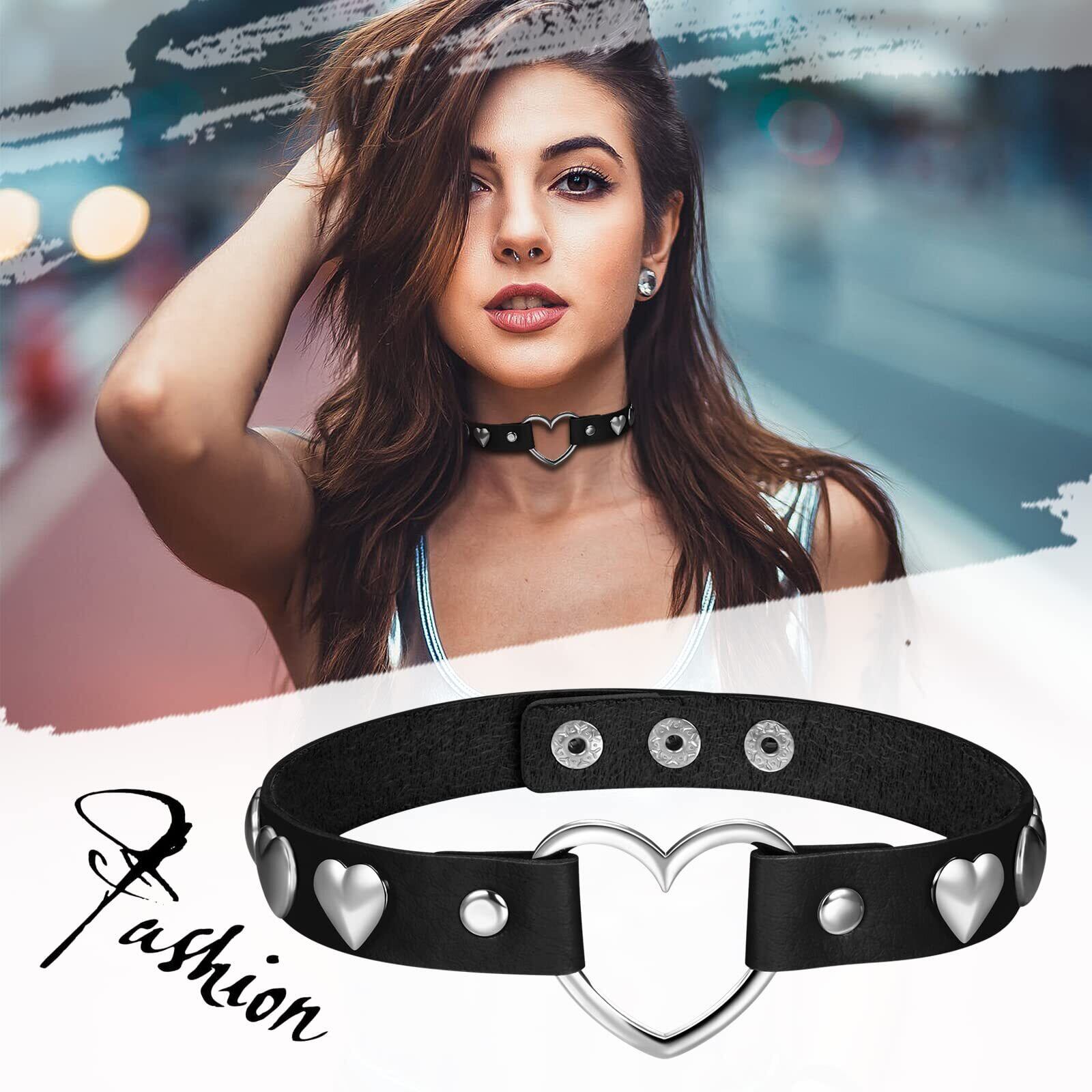 [Aroncent] チョーカー 首輪 ハート ロック 革ベルト ネックレス レディース 可愛い おしゃれ パンク系 ロック系 原宿系 パーティー コスプレ イベント ロリータ レディース ファッション アクセサリー