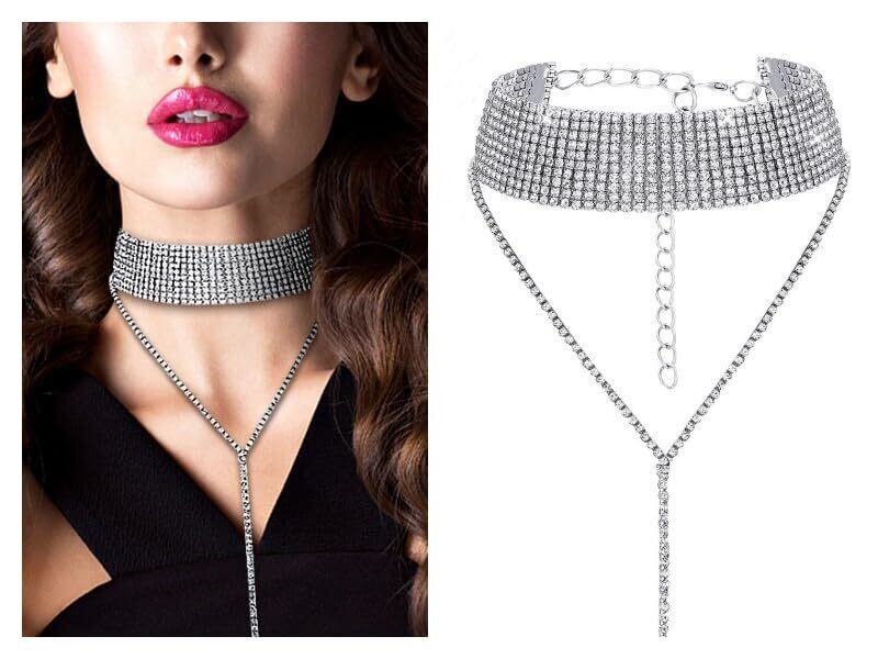 [Aroncent] チョーカー 首輪 レディース キラキラ シンプル セクシー かわいい ネクタイ風 ネックレス パンク系 ロック系 原宿系 ファッション アクセサリー パーティー イベント 彼女 プレゼント