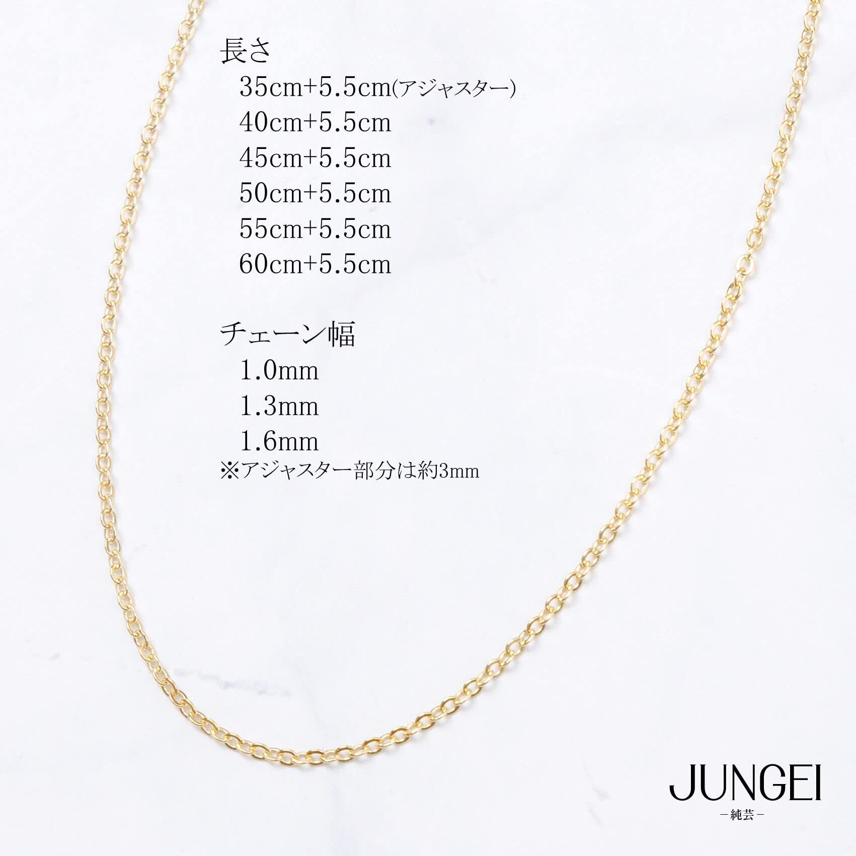 【新着商品】[純芸] ネックレス チェーン 平あずき 14K ゴールド 調整アジャスター付き 幅1.0mm 1.3mm 1.6mm 長さ35cm~60cm 日本製 (35, 1.6mm)