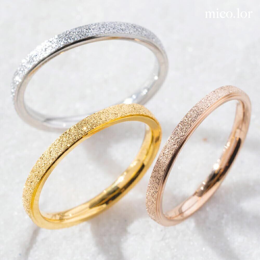 [mico.lor] ステンレス リング (38) 砂目サージカルステンレス製 316L ユニセックス ラメ キラキラ