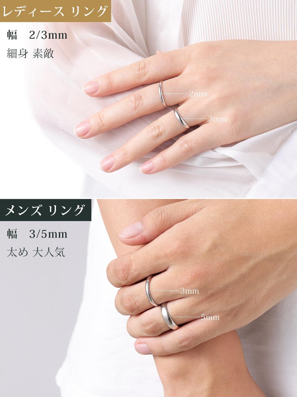❶定番な甲丸リング:洗練で伝統的なデザインは、ファションの流行などに左右されないので、婚約指輪で大人気です。また、2mm・3mm・5mmの幅を用意しております、ペアリングとしても非常におすすめです。