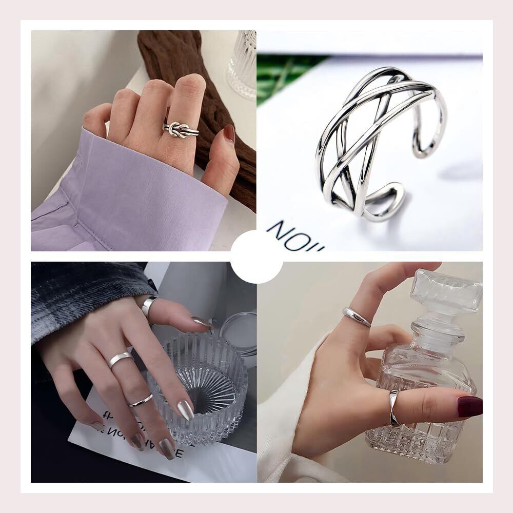 [QIKEJI] 指輪 6個入り メンズ レディース おしゃれ シンプル アクセサリー 人気 開口タイプ 調節可能 シルバー