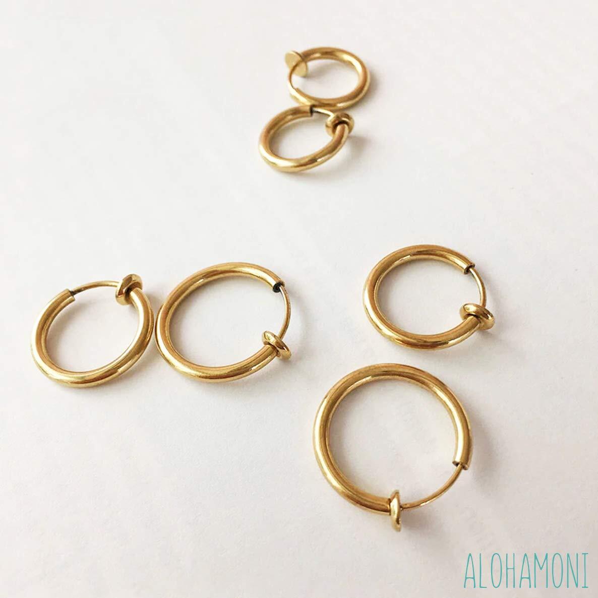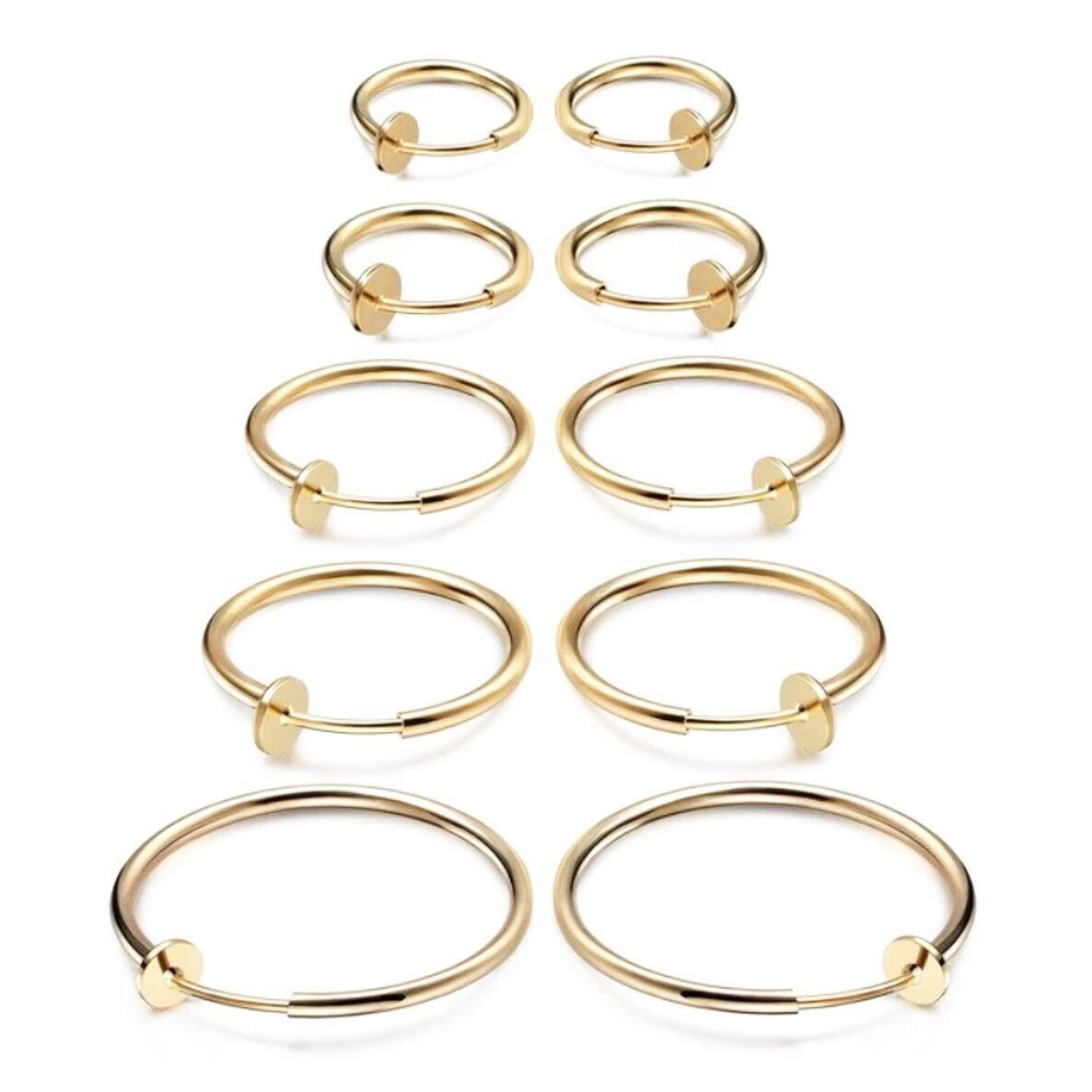 ALOHAMONI (アロハモニ) フェイクピアス イヤーカフ フープピアス イヤリング 両耳 5ペア 10個セット ゴールド シルバー ブラック フープ リング ノンホール レディース メンズ ユニセックス 挟むだけ 簡単 装着 (ゴールド)