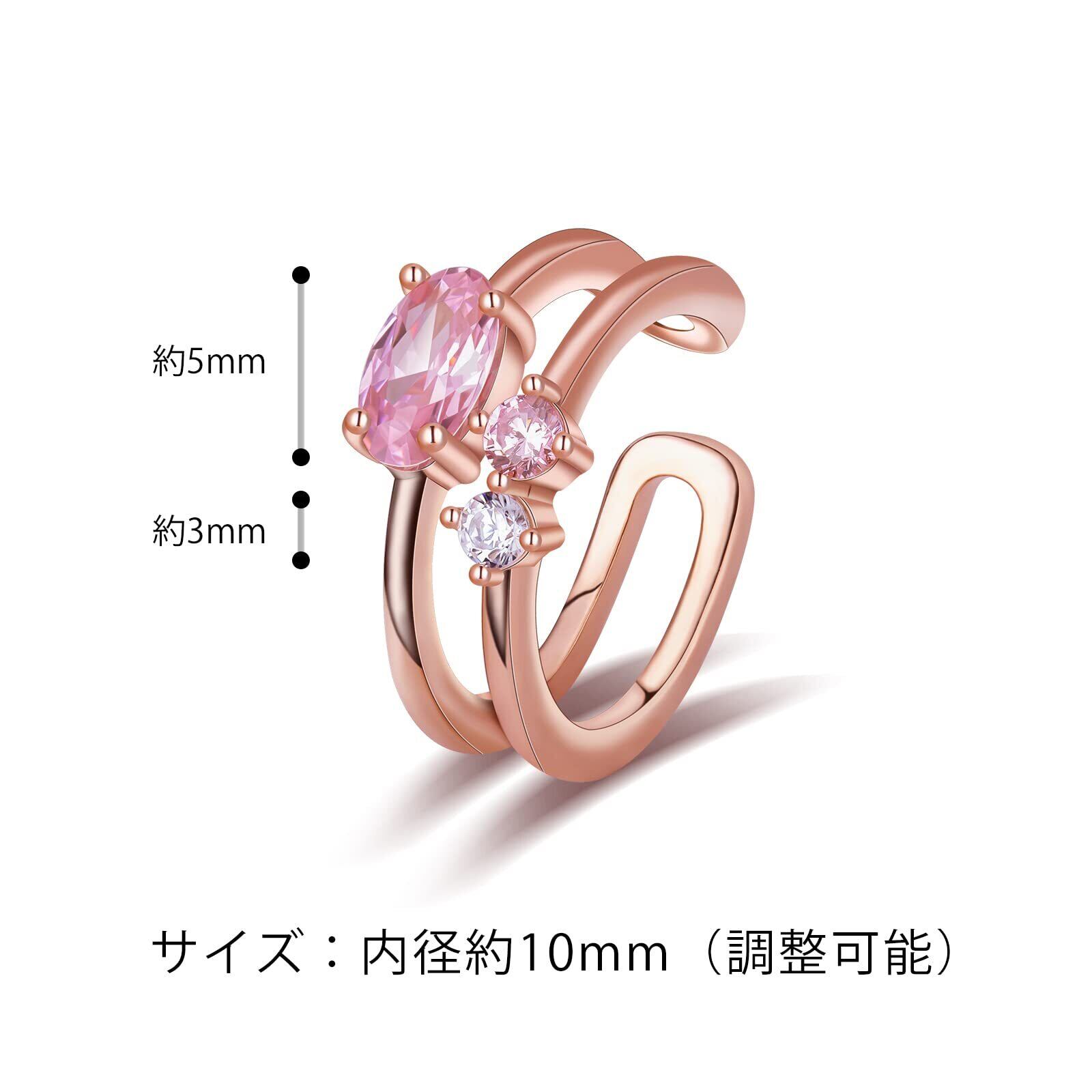2 連イヤーカフ:この レディースイヤーカフは特別のデザイなので、二倍の構造を採用して加工され。イヤーカプピンクゴールドに表れた鮮やかなジルコニアは、まだ咲いていない蕾のように、若いエネルギーを満ちた