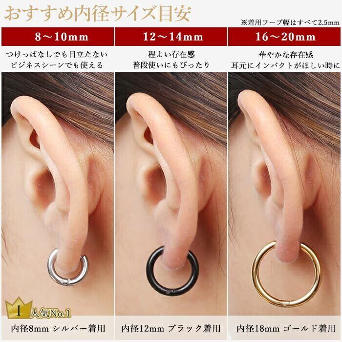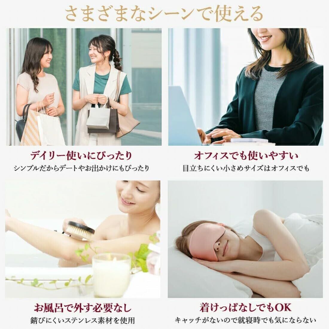【ワンタッチ式でストレスフリー|初心者にもおすすめ】着脱が簡単な中折れ式(ワンタッチ開閉)を採用。キャッチをなくす心配がなく、ピアス初心者の方でも扱いやすい構造です。ポストが飛び出さないため、マスクやタオルにも引っかかりにくく、つけっぱなしにも◎。寝るときや運動時も快適です。