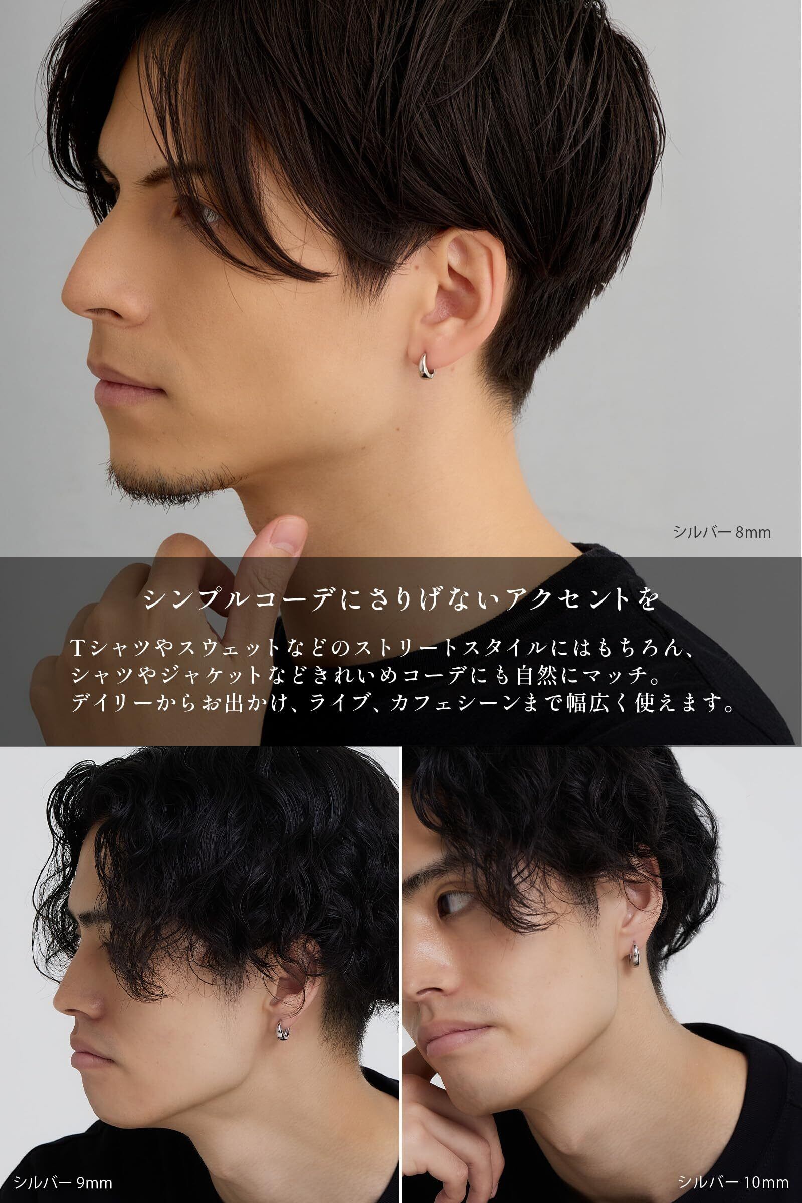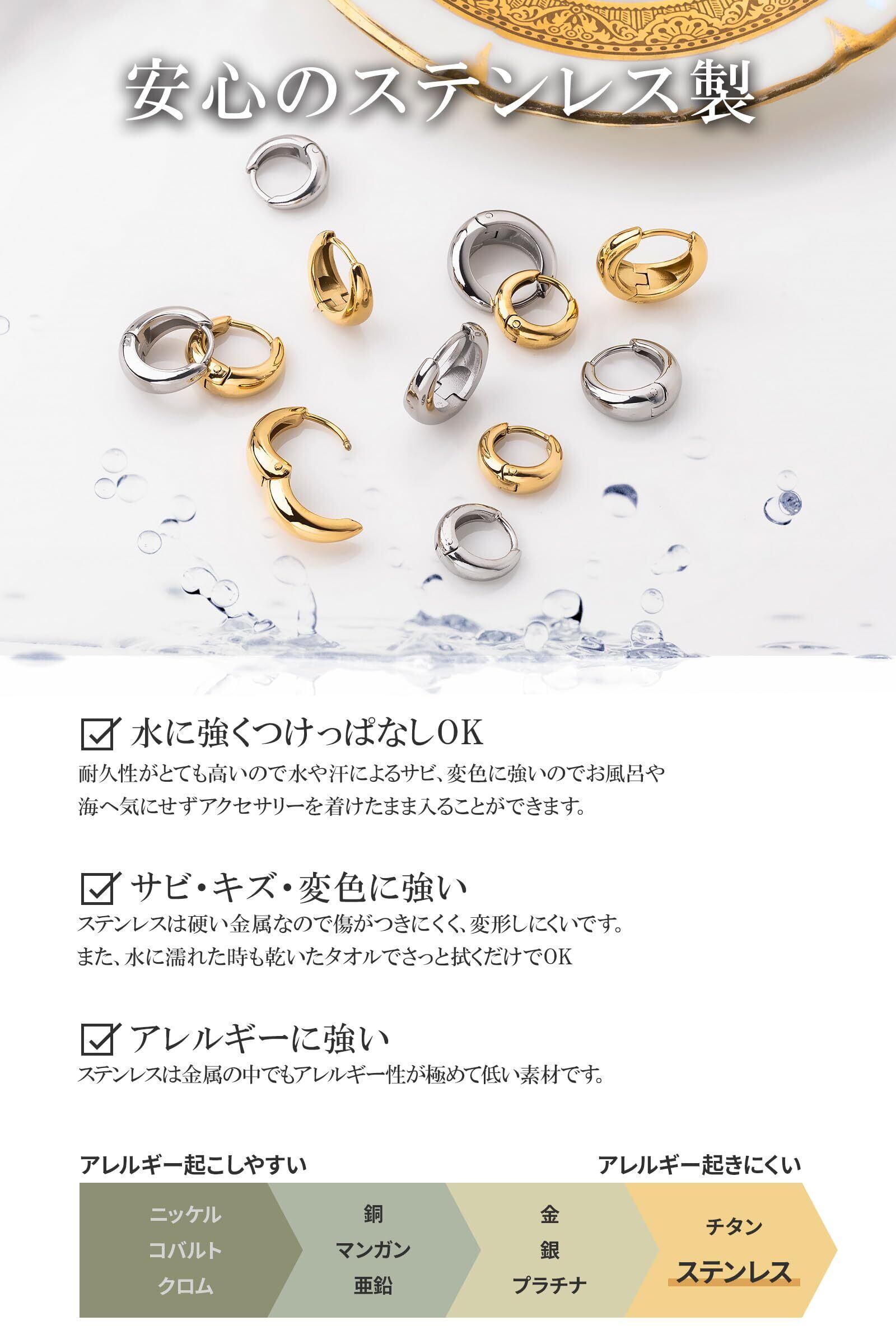 【Puente】ピアス フープピアス リングピアス メンズ レディース ぷっくり 太め ステンレス つけっぱなし 錆びない 小ぶり 小さめ 中折れ 両耳