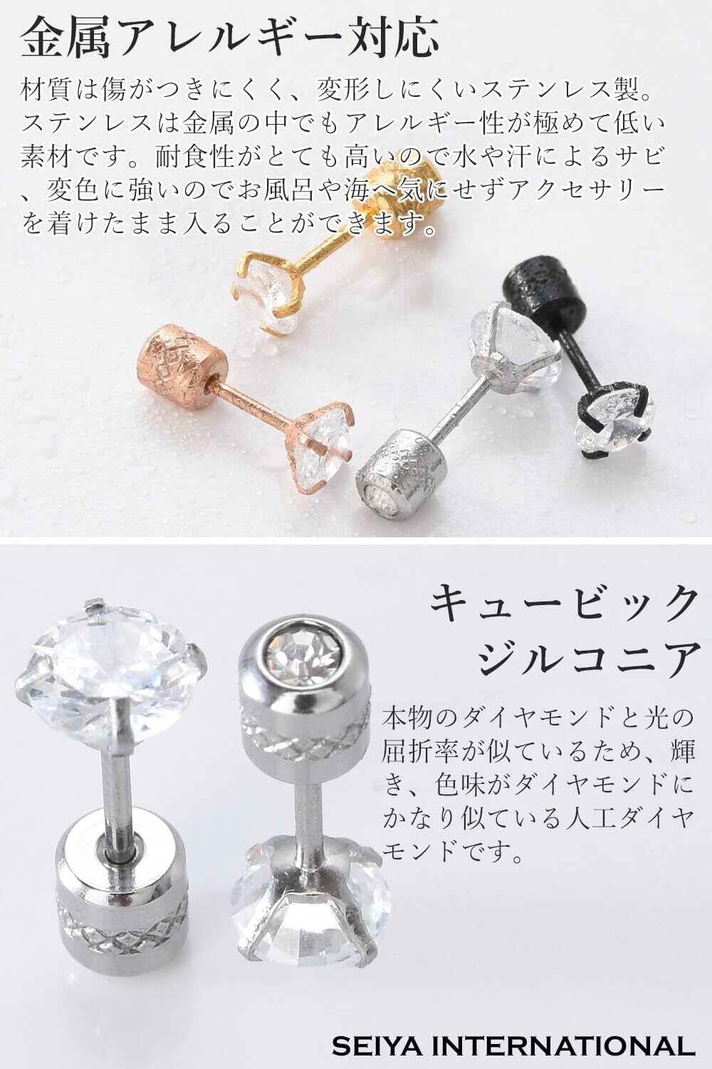[SEIYA INTERNATIONAL] ピアス レディース 金属アレルギー対応 つけっぱなし ステンレス 両耳 2個セット