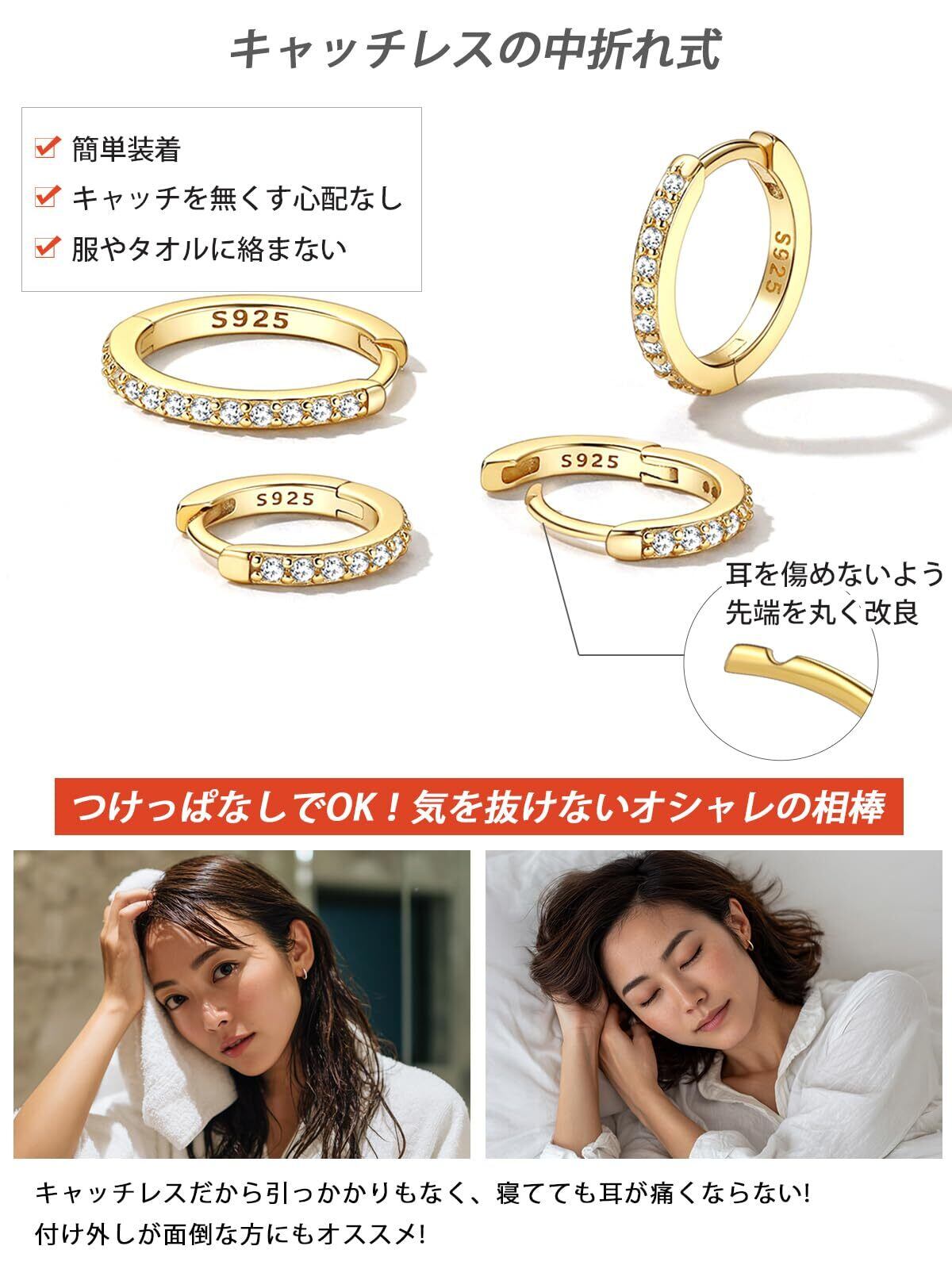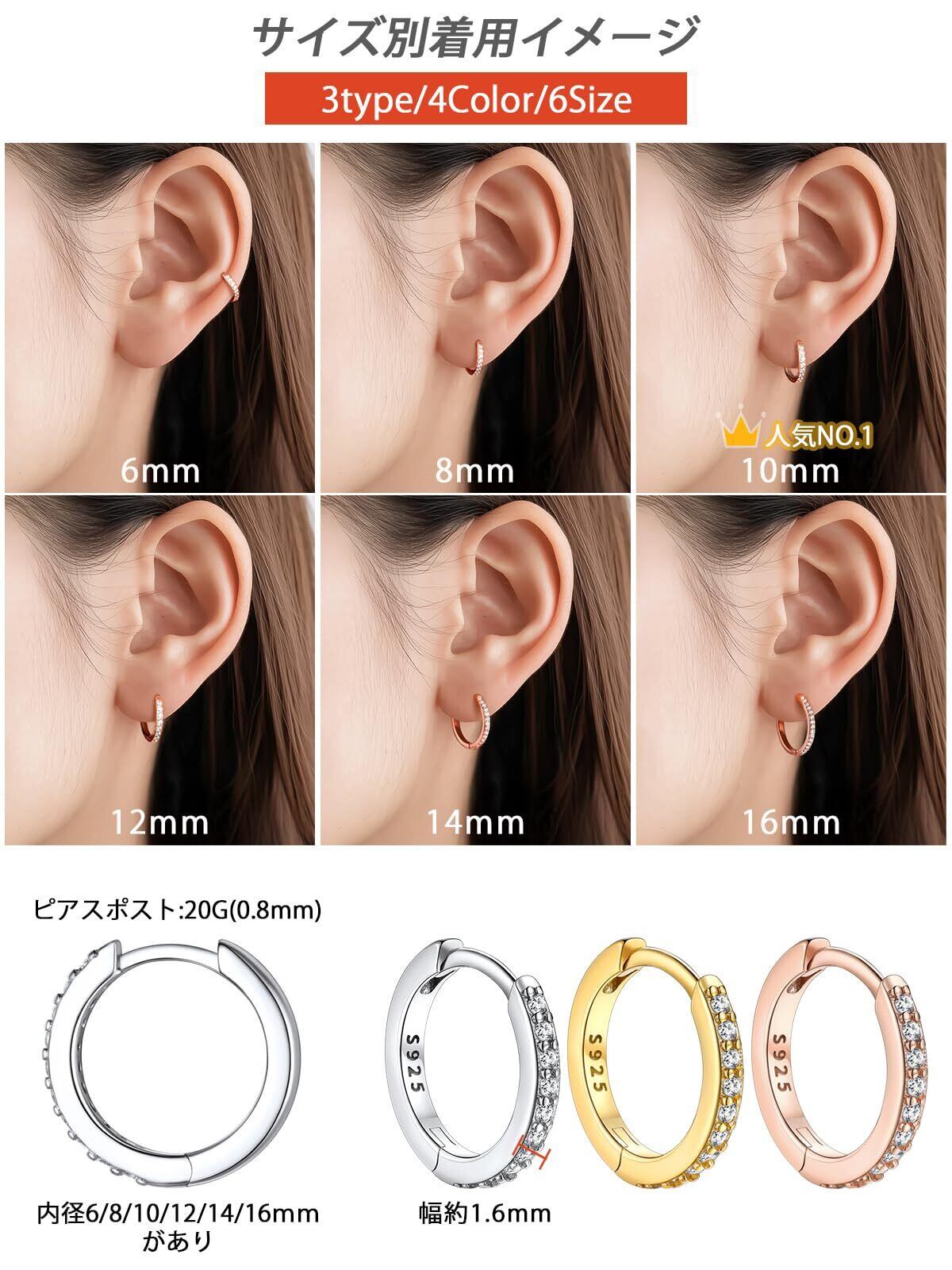 [FaithHeart]フープピアス レディース小さめ メンズ リングピアス つけっぱなし シルバー925 金属アレルギー対応 小さい ジルコア シンプル 6mm