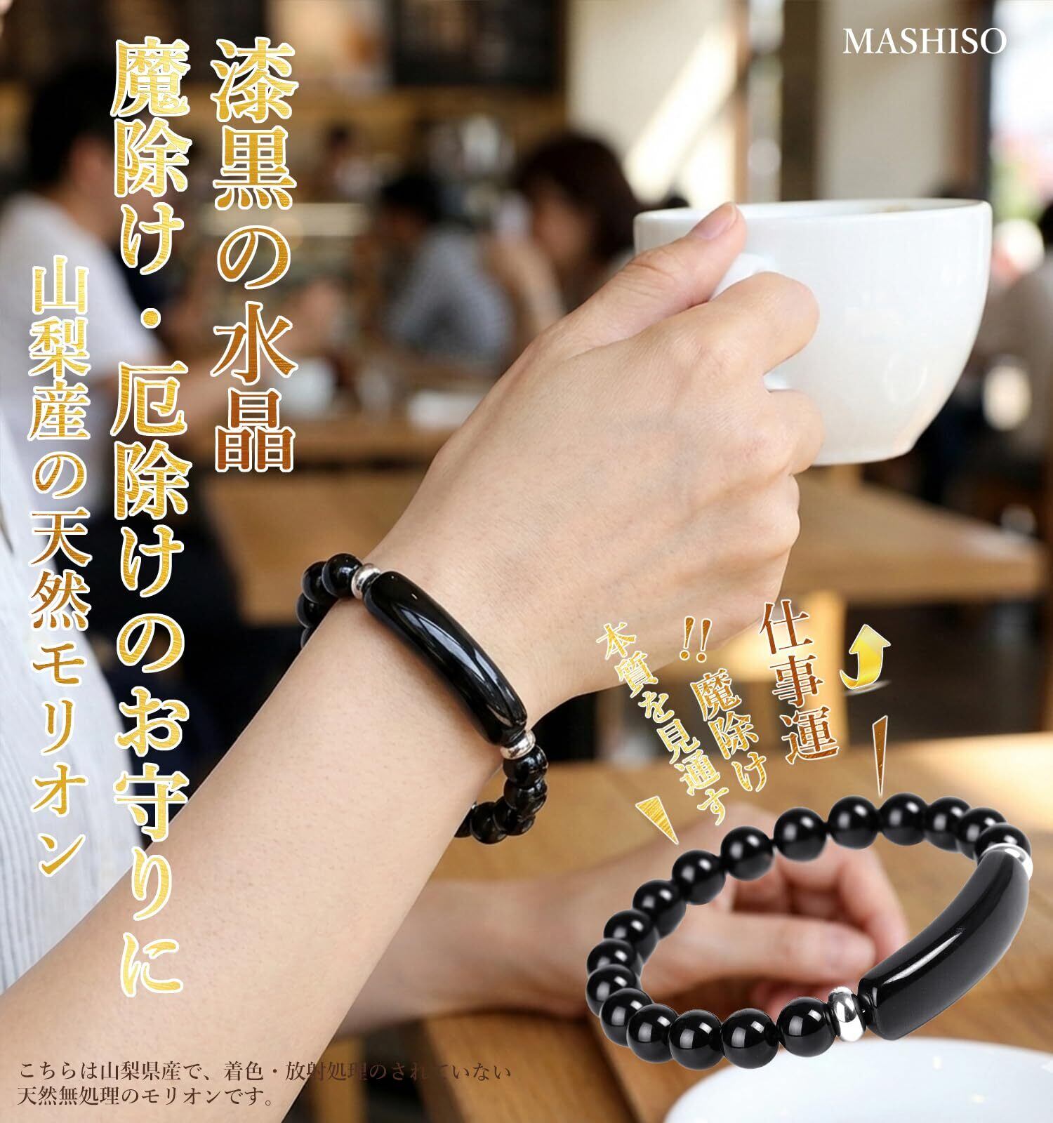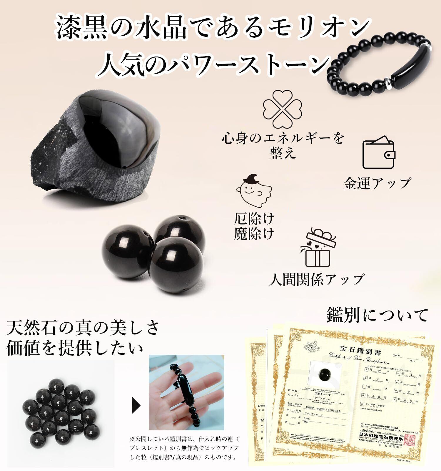 【新着商品】モリオン パワーストーン ブレスレット 天然石 山梨黒水晶 漆黒の輝き【魔除け・厄除け】 お守り 浄化用 災除け 悪運除け 邪気除け エネルギーチャージ オニキスブレスレット レディース メンズ 天然モリオン (16.5cm 幅8mm) 4つ色が選ばれる