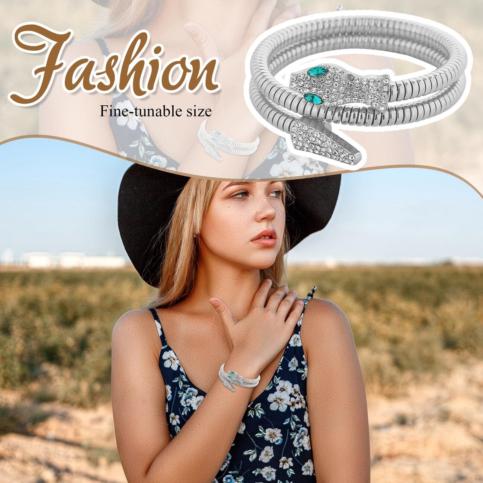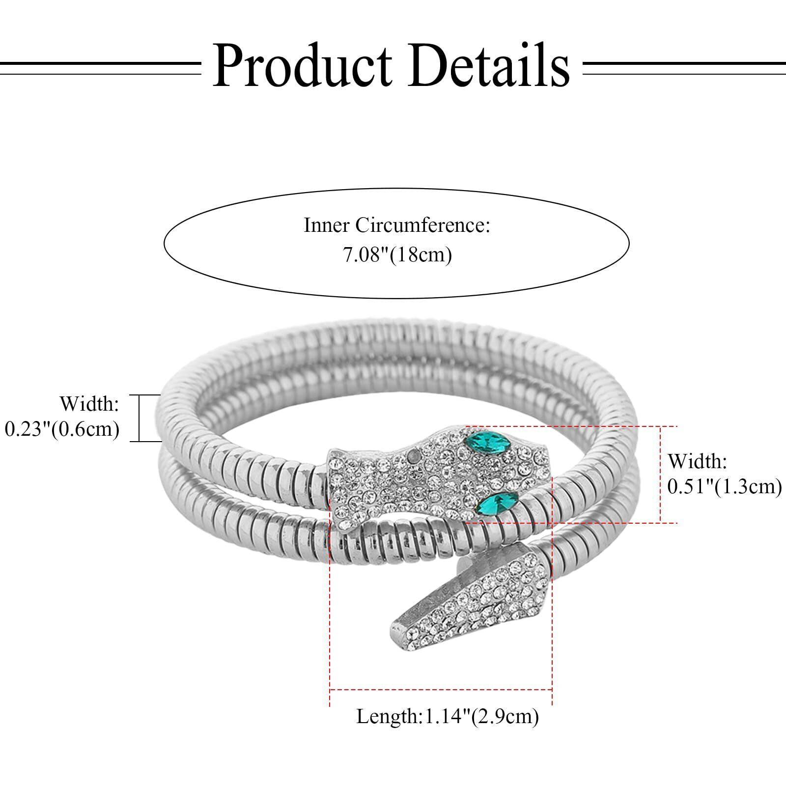 蛇 バングル レディース ブレスレット ステンレス: 絡まる 多層 スネーク 腕輪 エメラルド 誕生石 蛇目 可愛い おしゃれ 腕飾り 柔らかい アクセサリー ジルコニア 女性ジュエリー シルバー