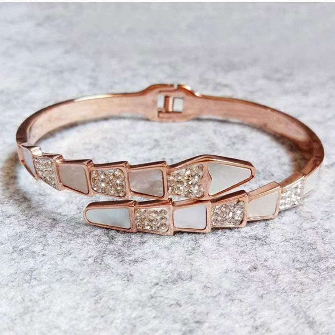 【数量限定】フリーサイズ バングル レディース ピングゴールド ジルコニア 貝の殻 おしゃれ 蛇形ブレスレット 仕上げ チタン製 人気 アクセサリー