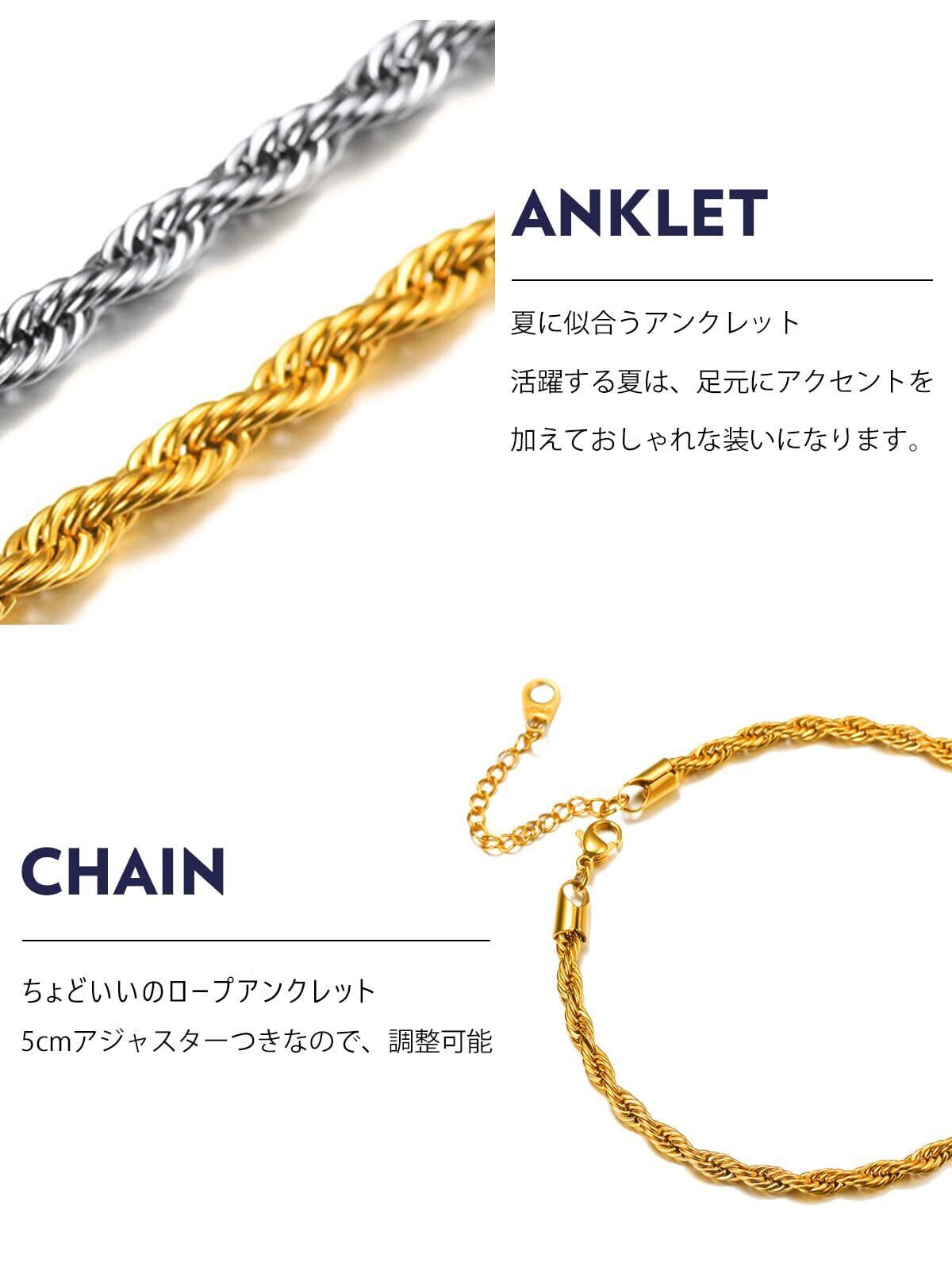 【数量限定】[Bandmax] ゴールド アンクレット メンズ 18金めっき ステンレス ロープチェーン 水対応 つけっぽなし 足首 アクセサリー 23cm+5cmアジャスター