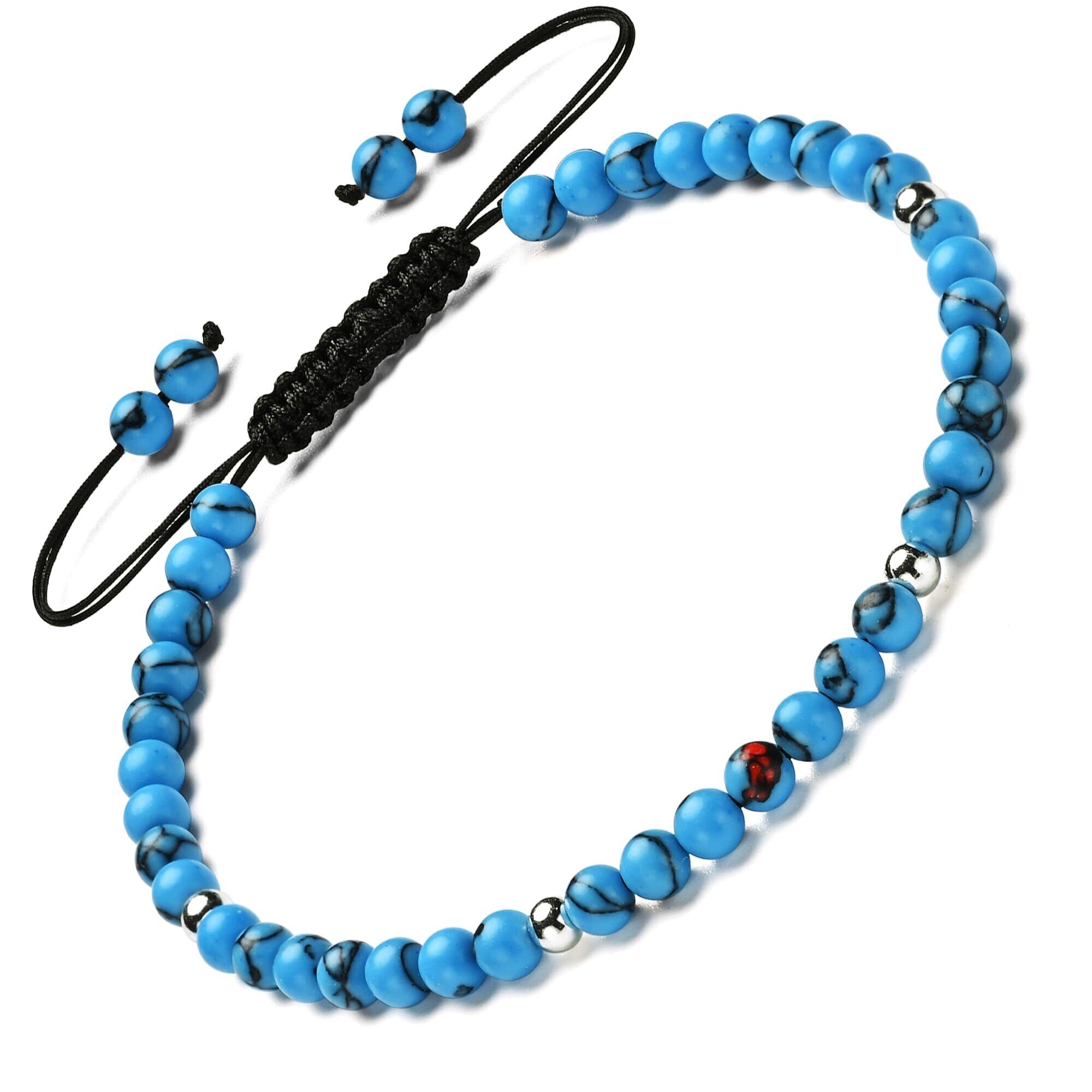 レディース天然石アンクレット&シルバー925(18K きん),4MM,トルマリン・オブシディアン・タイガーアイ・オニキス, 編みロープ, 22CM+延長コード10CM, (ブルー・ターコイズ)