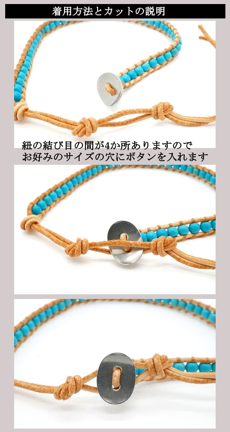 ユニセックスで着用可能なアンクレットです。 写真のYs jewelry オリジナル巾着にてお届けいたします。 ※お好みのアンクレットカラーをお選びください。 約4mm玉の天然石を使用し手作りにて編み込んだブレイドアンクレットです。 4つのサイズ調整があるので男女ともに着用できるアンクレットとなります。 余った革紐はハサミで切っていただければ邪魔になりません。