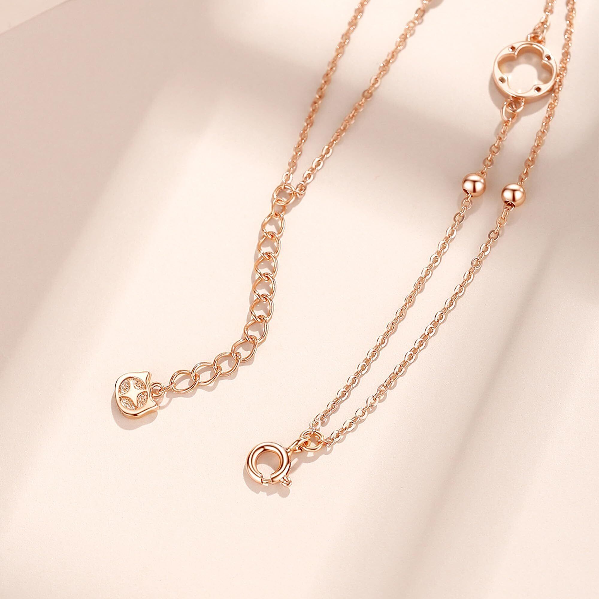 【新着商品】[シルバーサンダー] アンクレット レディース つけっぱなし人気 - 幸運と勇気のシルバー925 2連チェーン 18金 ピンクゴールド四つ葉のクローバーデザイン【金属アレルギー対応・シンプルかわいい】 贈り物【つけっぱなしOK】