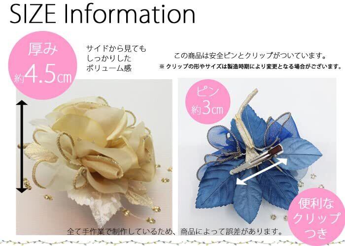 選べるカラーがたくさん! どんなフォーマルスーツにもマッチするカラー展開です。 コサージュは結婚式・入学式にご参列の方のマストアイテムの一つ。 このコサージュに別売のクリップをつけると、お召し物を傷つけずにつけていただくことができます。 [鎌倉工芸]のコサージュは控えめだけど華やかな印象を残す「晴れの日の魔法」 あなたが使う日を想像しながら、手作業で丁寧に一つ一つの作業を行っています。 今まで子育てを頑張ってくれた奥様へ、お子様の卒業式の日に感謝の気持ちを込めてコサージュを贈る旦那様も増えてきました。 ※この商品は手染めです。水濡れをしますと移染を起こす場合があります。 ※すべての工程が手作業のため、商品によって若干の誤差が生じる場合があります。