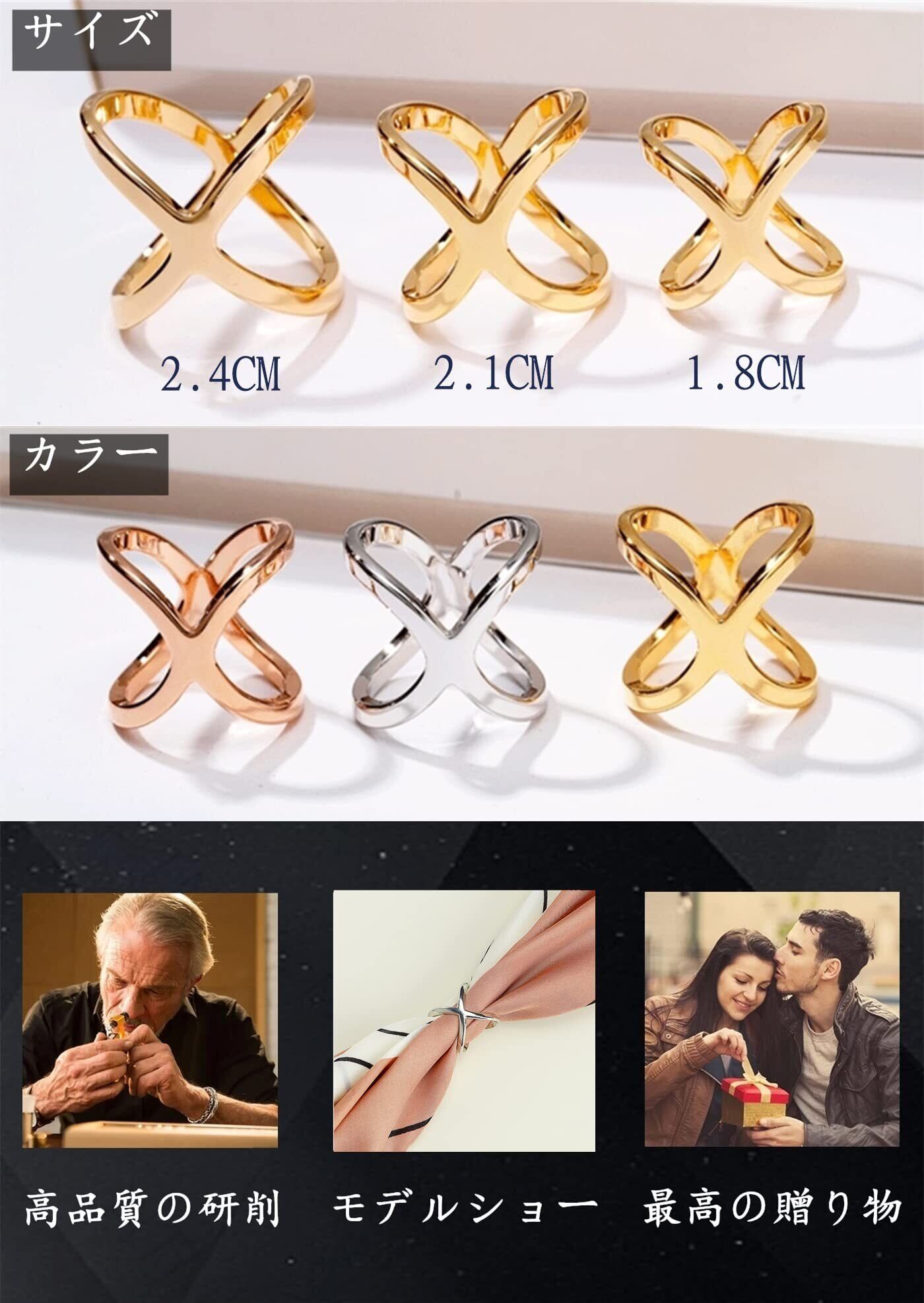 スカーフバックル レディース 人気 3種3個入 スカーフリング かわいい 大人のブローチ チタン X形ファッションバックル 滑らかシルククリップ 女性【3色3サイズ】