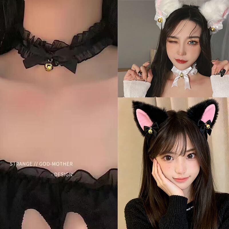 [wowjimi] 猫耳カチューシャ スーツ 猫耳 カチューシャ 鈴付き首輪 コスプレ かわいい 仮装小物 学園祭 リボン 愛い コスチューム 大人用 子供用 ハロウィン クリスマス 新年 ダンスパーティー ロールプレイ