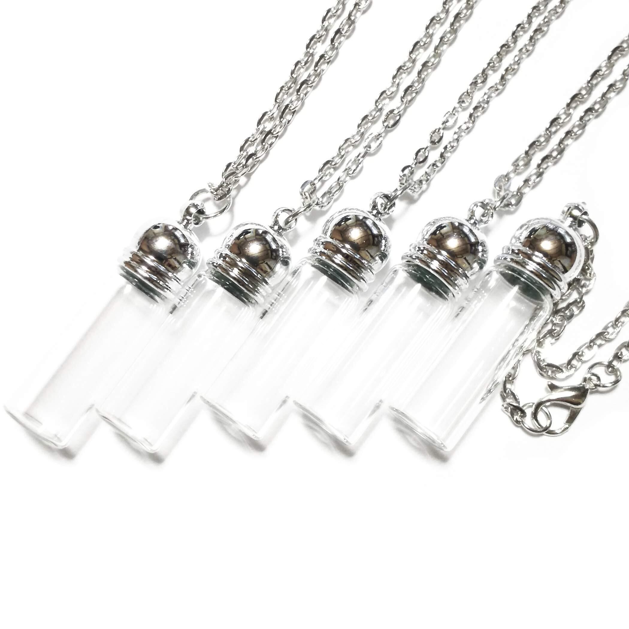 【可愛いネックレス型の小さいガラス容器】中に好きな物を封じ込めて、外出時にもお洒落に!可愛い、多用途アクセサリーです。ハンドメイドにも大人気なミニボトル! ※ 小さな容器です。購入前にサイズを確認してください。
