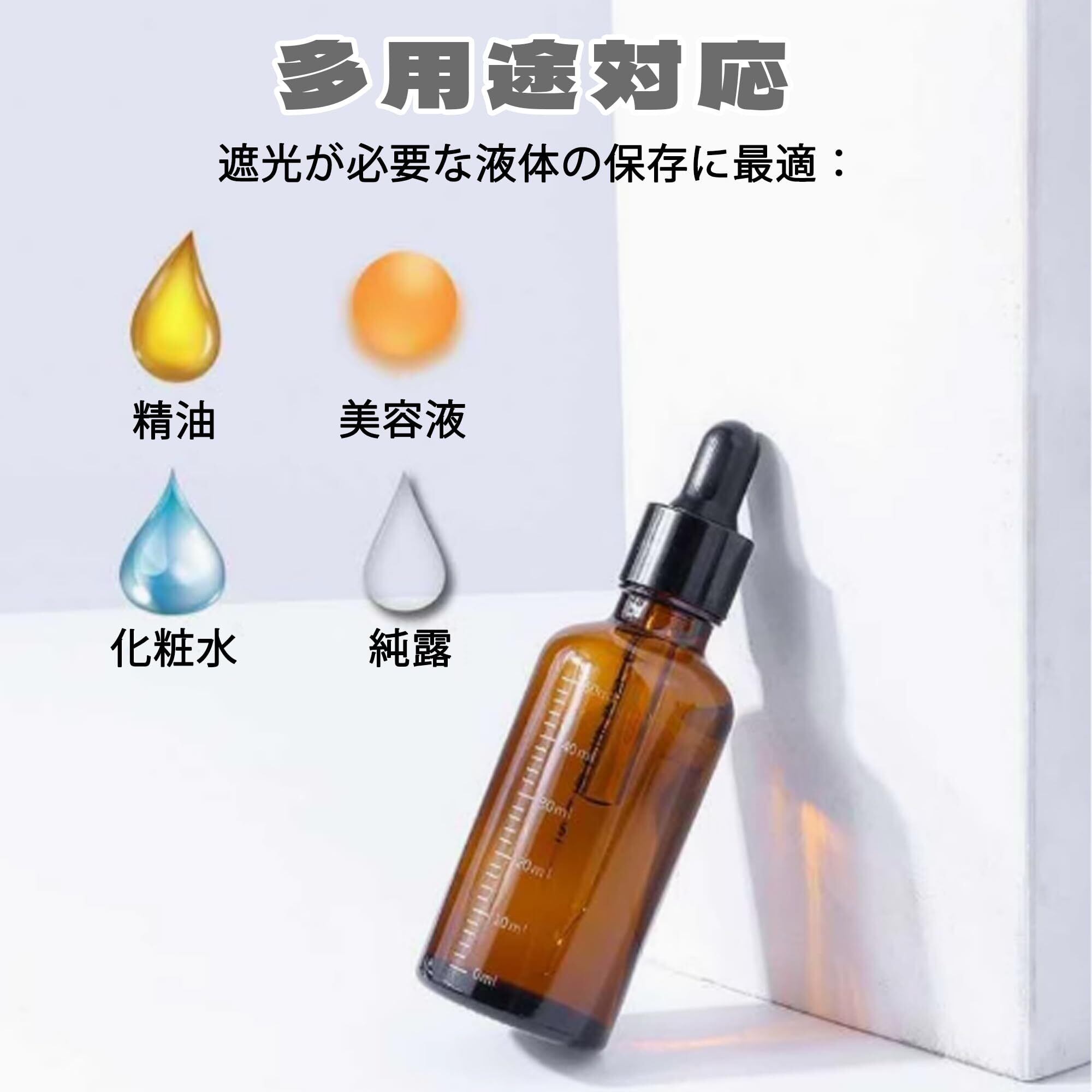 【多用途活用】オイルボトル ガラスは精油・香水・化粧水などあらゆる液体の保存に。日常使いから旅行用小分けまで、高級感ある茶色ボトルが活躍します。