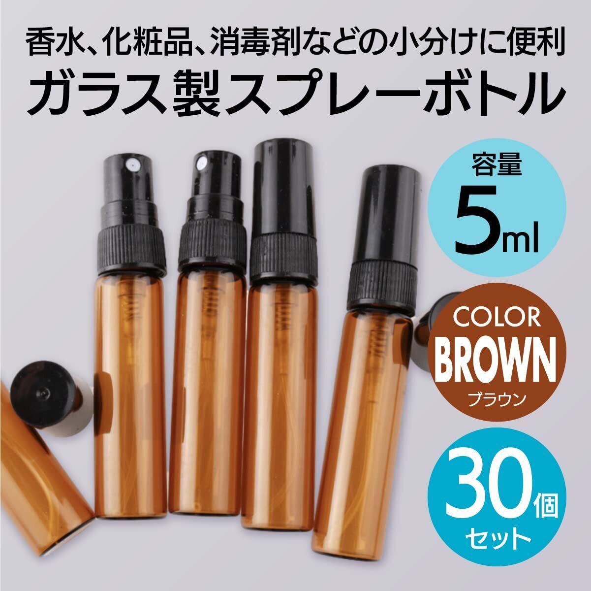 ENN LLC 香水スプレーボトル ガラス製 ミニ 携帯用 芳香剤 消臭剤 小分けボトル アトマイザー 5ml 30個セット (ブラウン)