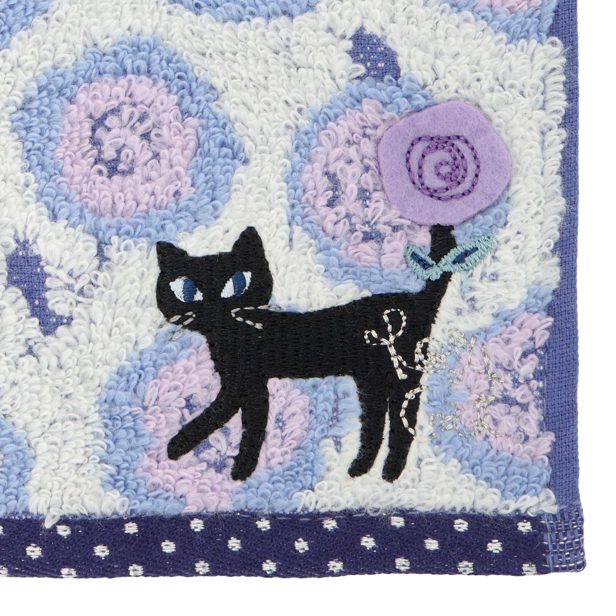 プレゼントに喜ばれるフラワージャガードのタオルハンカチ。ロージーキャットの刺繍柄が可愛い