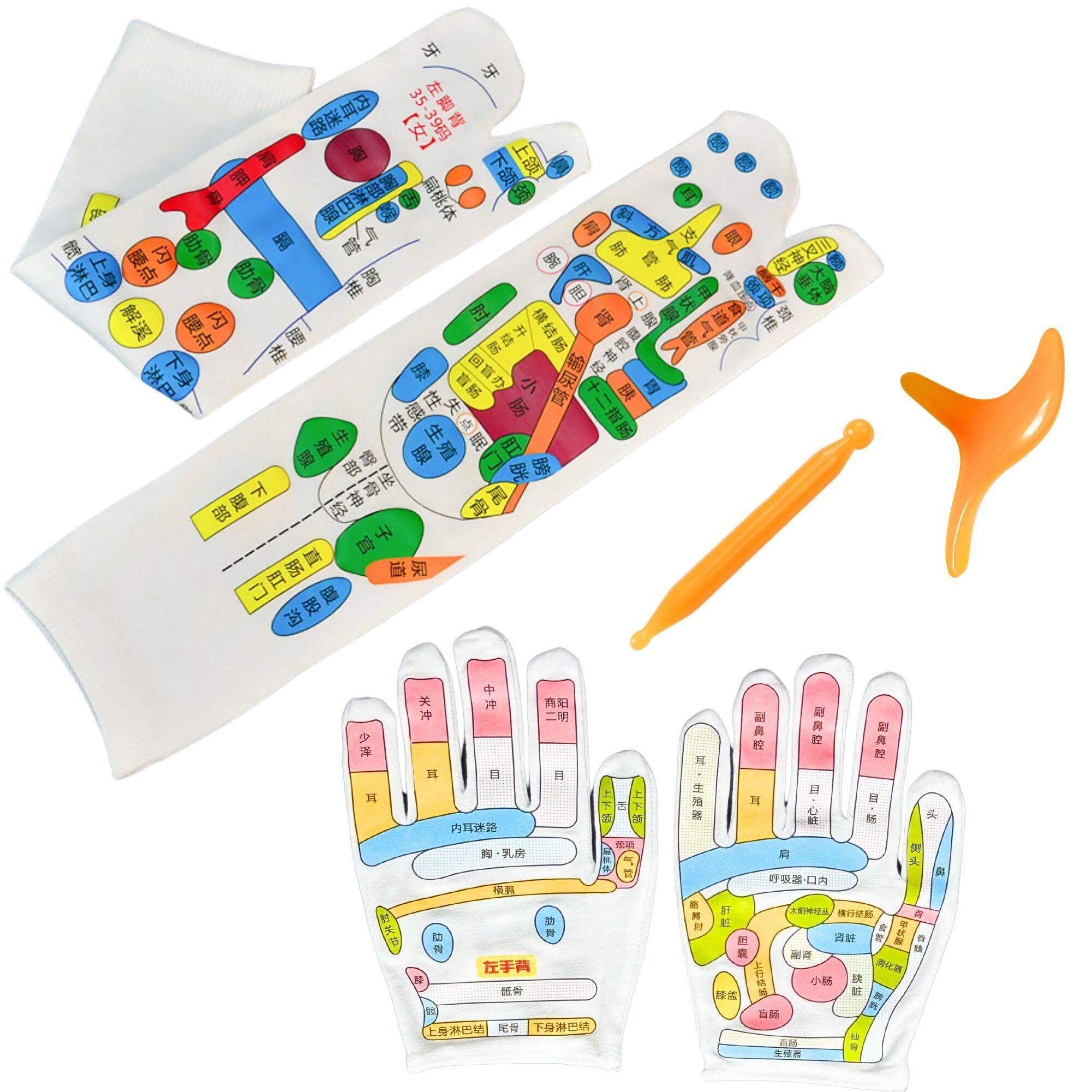 反射区 マッサージ ツボ 押し 手袋 グローブ 足裏 ソックス セット リフレクソロジー セルフケア 健康促進 自宅療法 経絡 (男性サイズ)