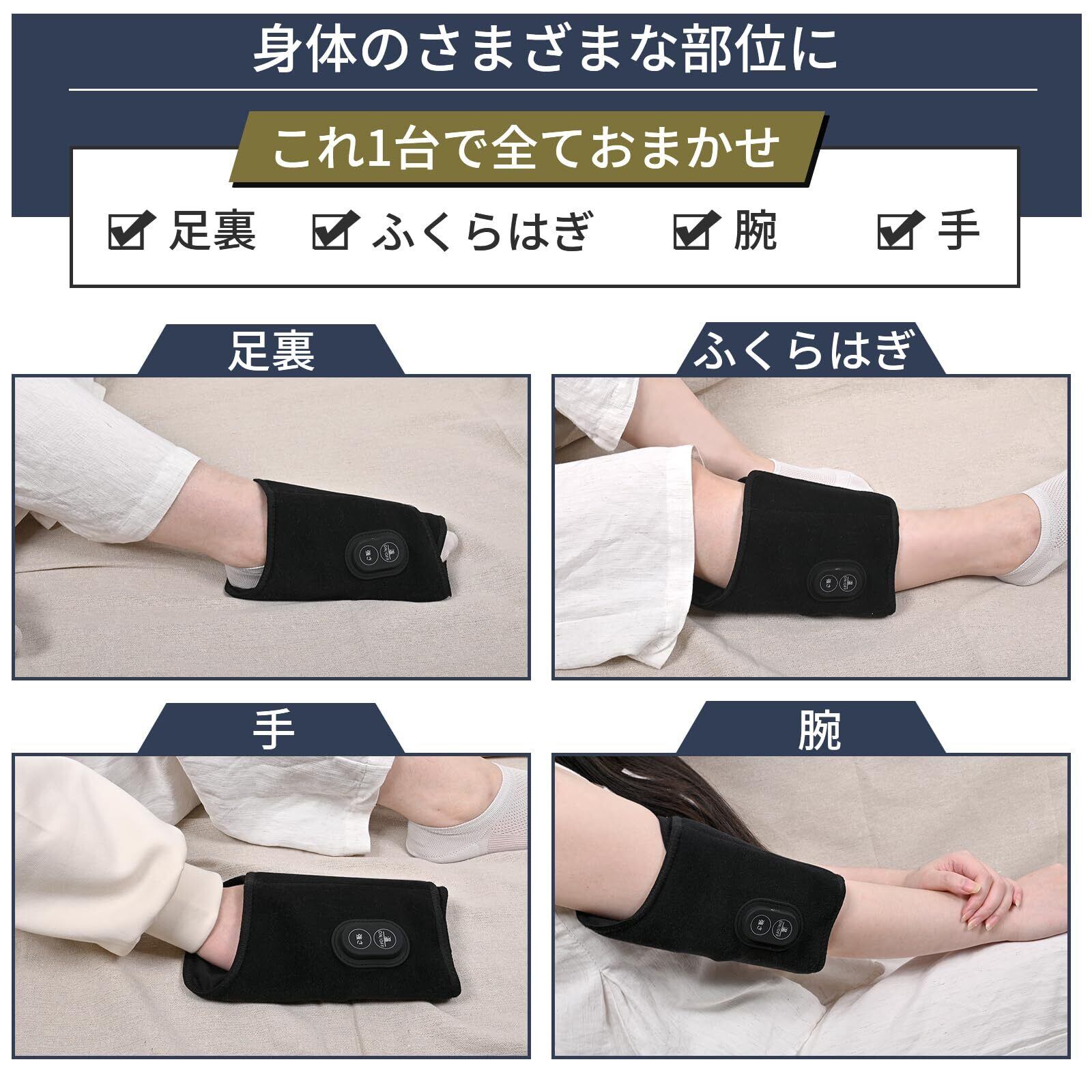 YOSINA 電動 足うらケア 空気圧 温熱機能 足裏ケア 自動OFF 軽量 静音設計 3段階調節 Type-C充電式 ふくらはぎ 腕 手に使える 男女兼用