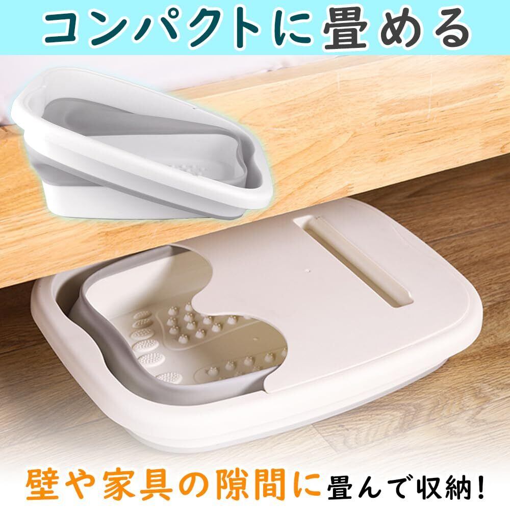 自宅でも手軽に足湯を楽しめる便利なフットバスです。本体は底面を押し込むことでコンパクトに折り畳めるため、保管場所に困らないだけでなく持ち運びしやすい仕様。ハイキング・キャンプ・ピクニックといったアウトドアシーンでも活躍します。