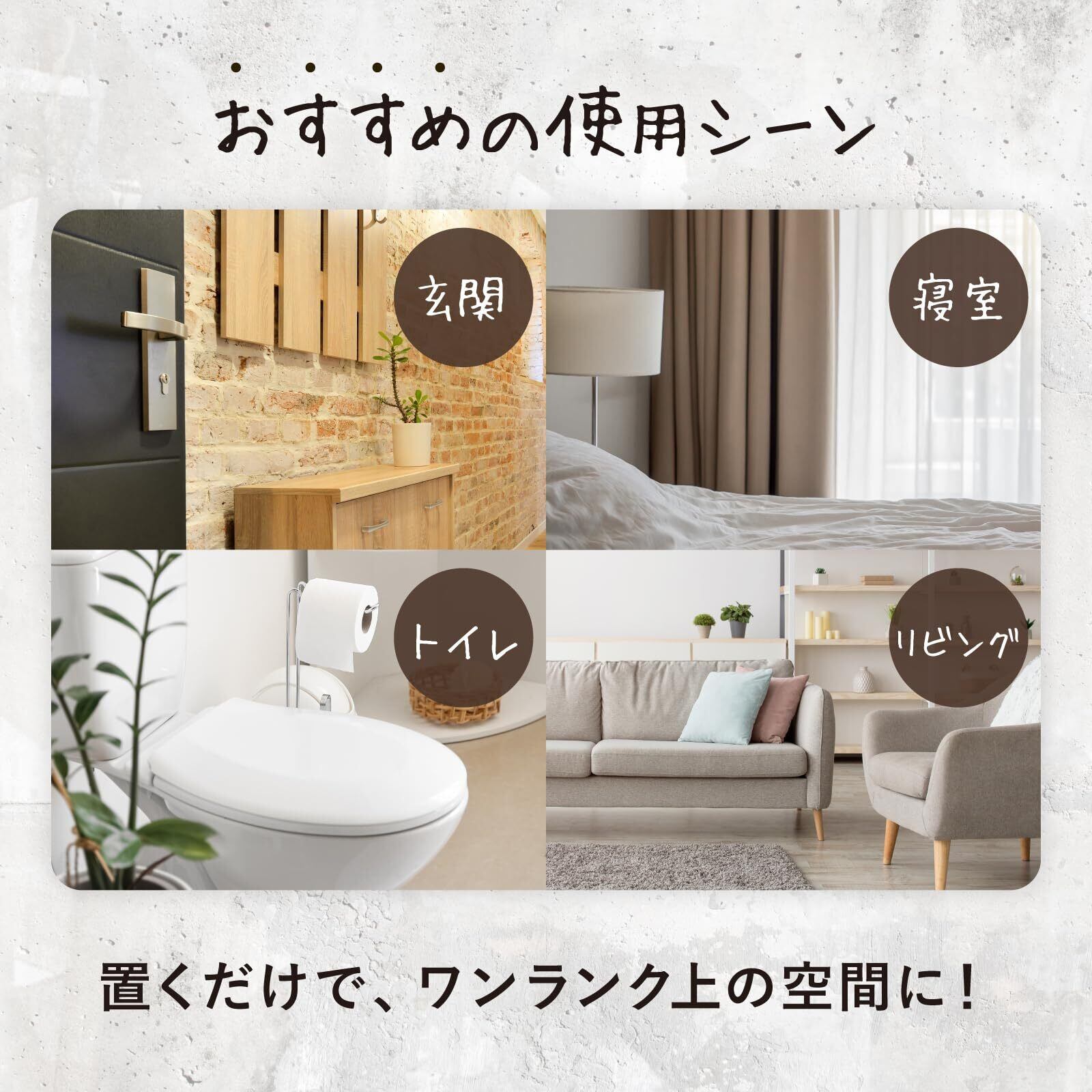 どんなお部屋にもマッチしやすいユニセックスなインテリアデザイン。玄関・寝室・リビング・トイレなど複数置きにおすすめのまとめ買いセット