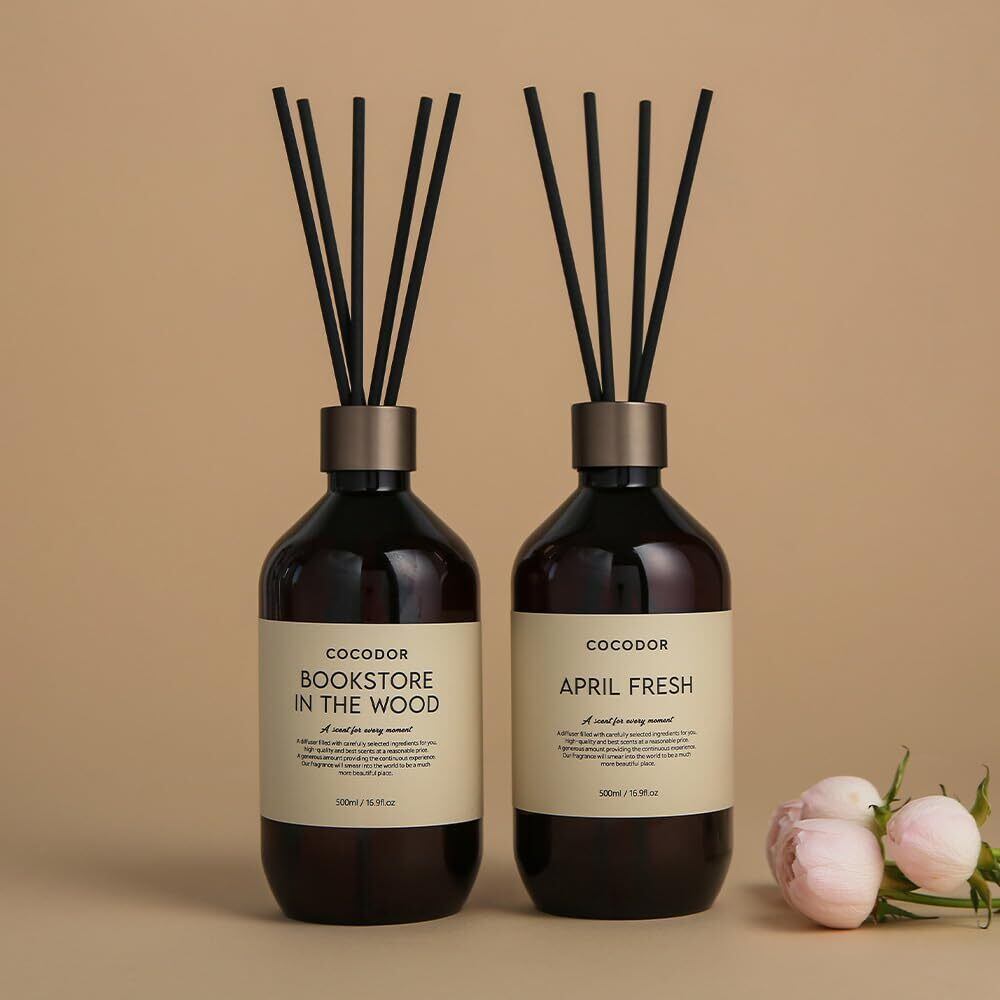 【香りの強さも、自分らしく】500mlの大容量ディフューザーが、上質な香りを約90日間ふんわりと空間に広げます。洗練されたブラウンプラスチックボトルは、香りだけでなくインテリアとしてもラグジュアリーな存在感を放ちます。
