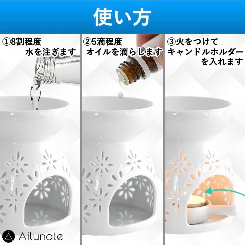 Ailunate アロマポット アロマバーナー アロマキャンドル 陶器 アロマディフューザー 茶香炉 アロマ炉 ホルダー おしゃれ 花 雪