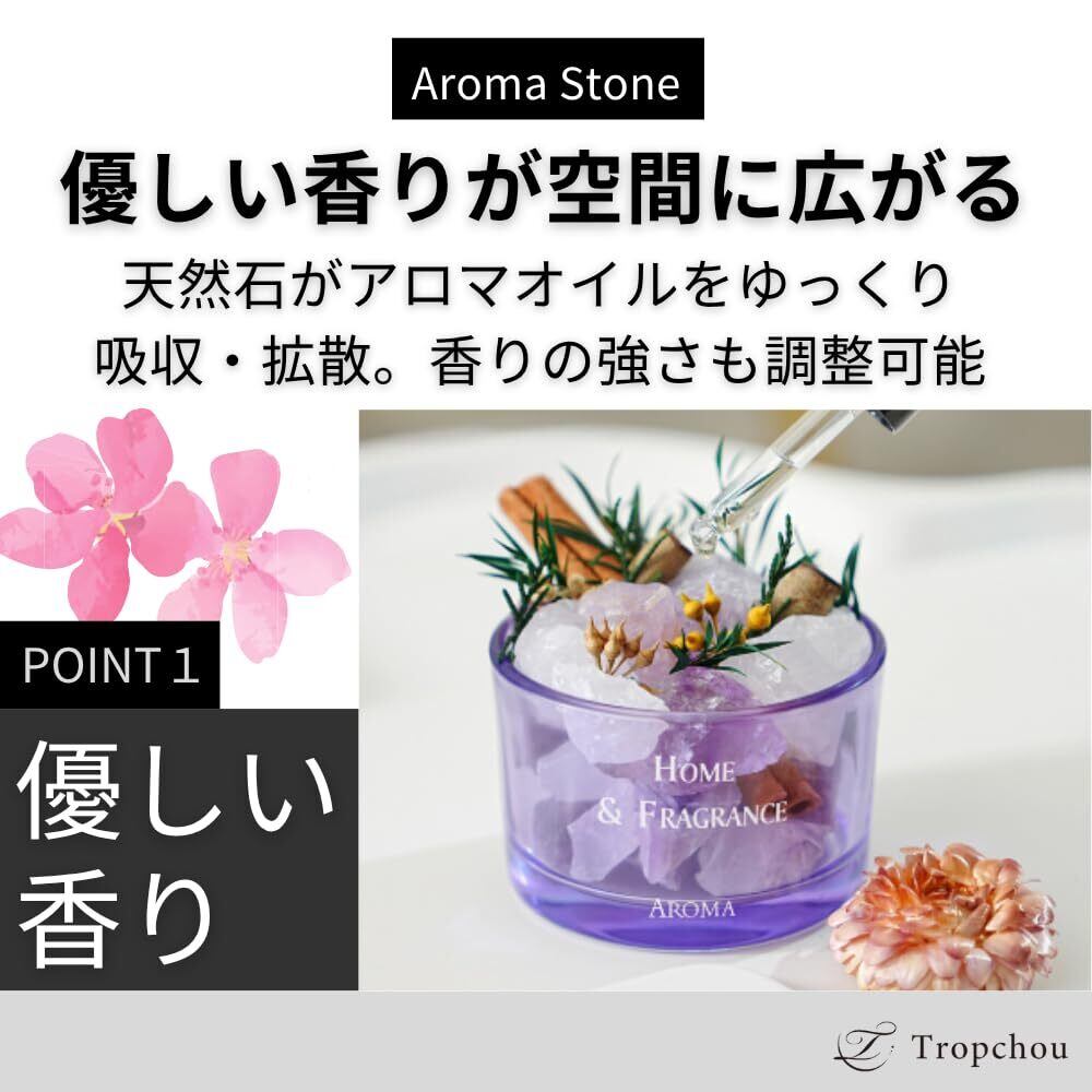 【数量限定】Tropchou アロマストーン オブジェ付 天然石 アロマディフューザー アロマオイル対応 インテリア (ブラック)