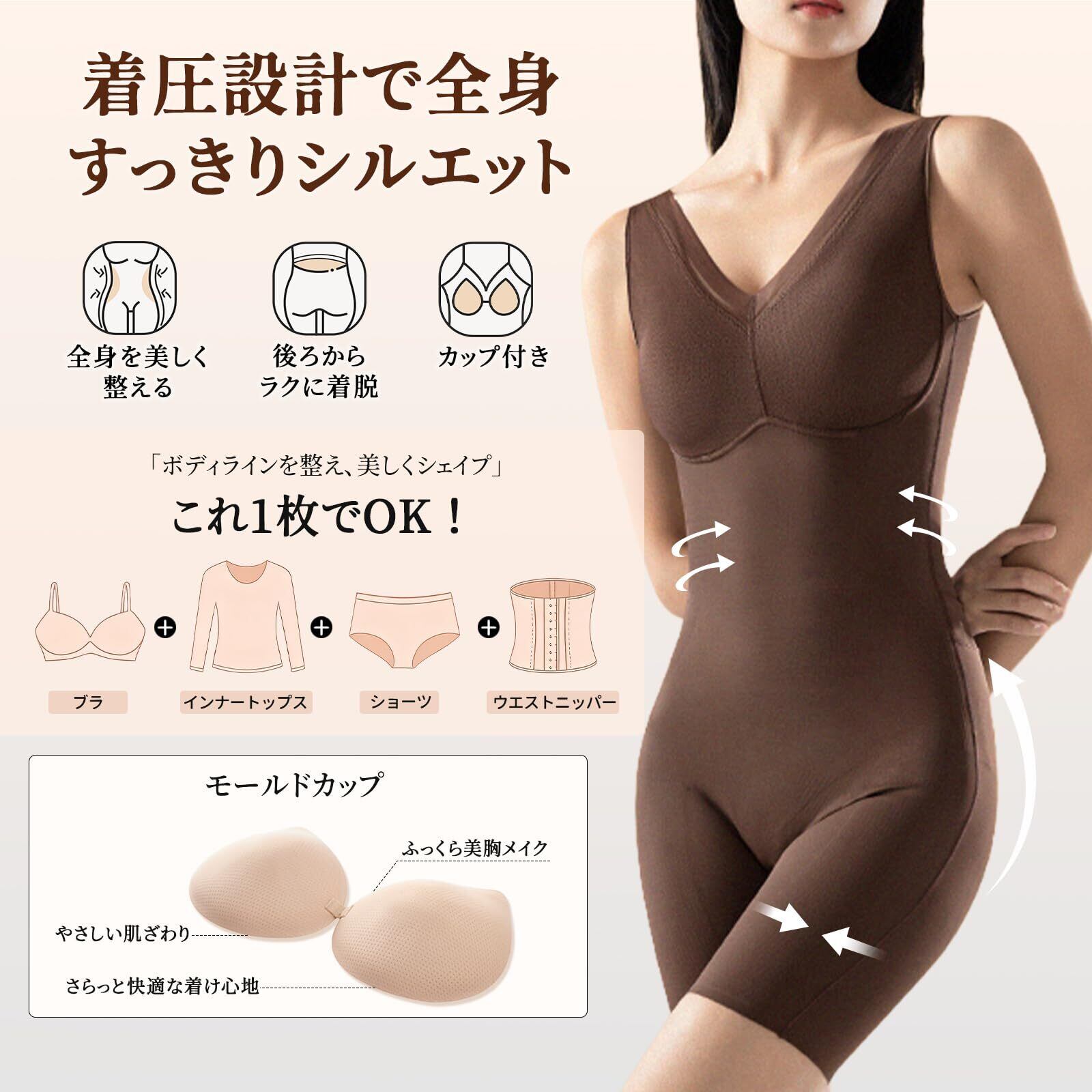 [veimia] ボディスーツ補正下着レディース【二重構造・強いサポート力・カップ付き・インナー要ら】オールインワンインナー シェイプアップ 加圧インナーお腹引き締め ヒップアップ 通気性 伸縮性 オープンクロッチ産後 美しいラインへ
