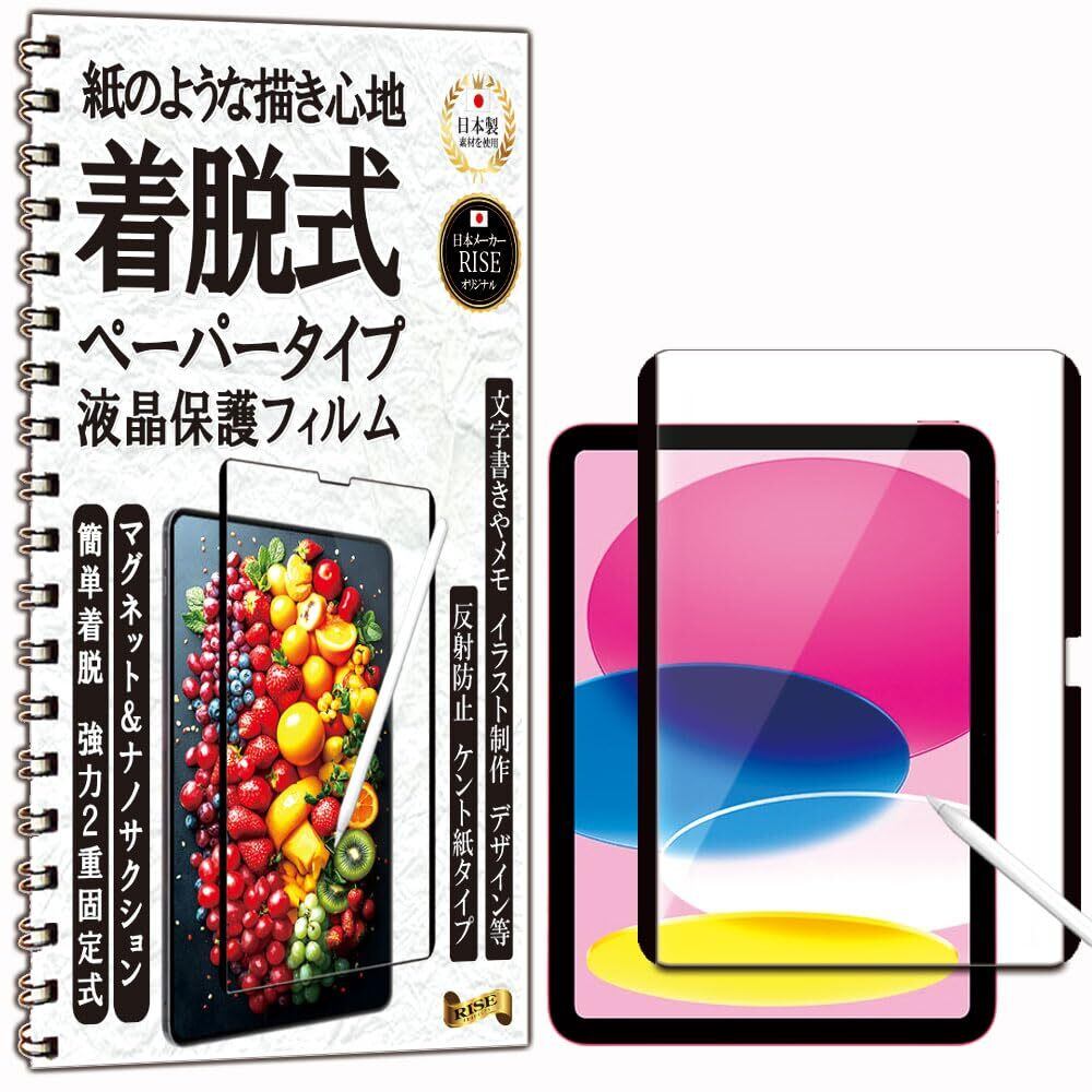 【数量限定】【RISE】 ペーパー 紙 着脱式 保護フィルム iPad 第11世代 (A16) 2025 用/第10世代 2022 10.9 インチ 用 液晶保護 フィルム アンチグレア マグネット & ナノサクション 2重固定式 ケント 紙のような描き心地 反射防止 磁石 指紋防止 撥水撥油 3D タッチ 日本素材製