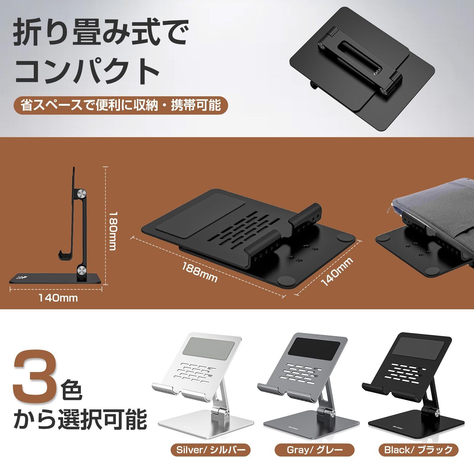 BoYata タブレットスタンド ipad/ノートPC/Surface Pro スタンド 縦置き 横置き 安定性 姿勢改善 滑り防止パッド 軽量 折りたたみ式 炭素鋼 5-13インチのMacbook/iPad/Kindle/Surface/Nintendo Switch機種などに対応 ブラック