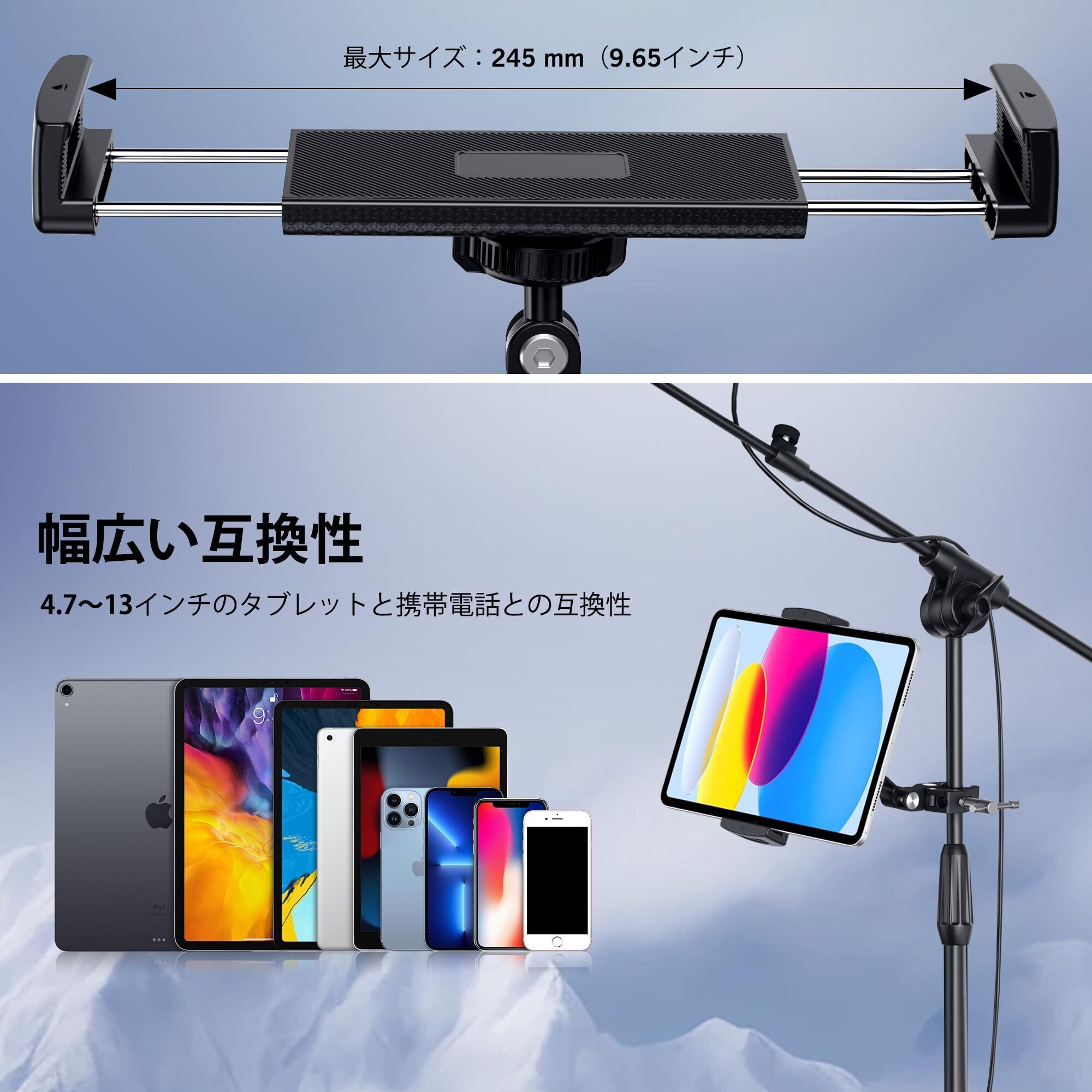 【数量限定】CreaDream iPad スタンド マイクスタンド タブレット スタンド マイク 携帯電話とiPadアルミ音楽スタンドスタンド 調節可能タブレットスタンド、4.7~13インチタブレットとスマートフォンに対応