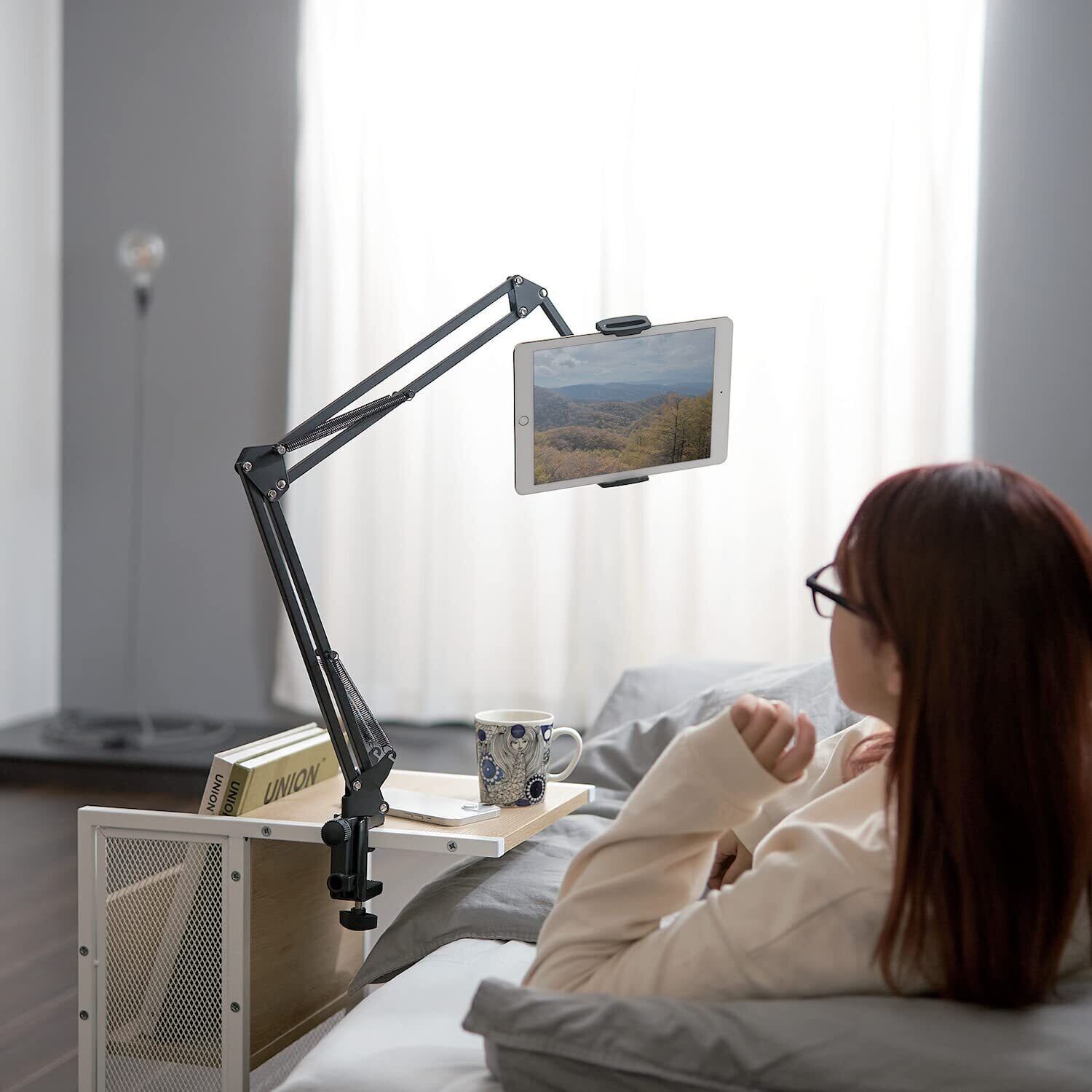 縦方向に固定するとベッドのヘッドボードに取り付けられるので横になった状態で使用でき、横方向に固定するとサイドテーブルなどにも取り付けて使用できます。
