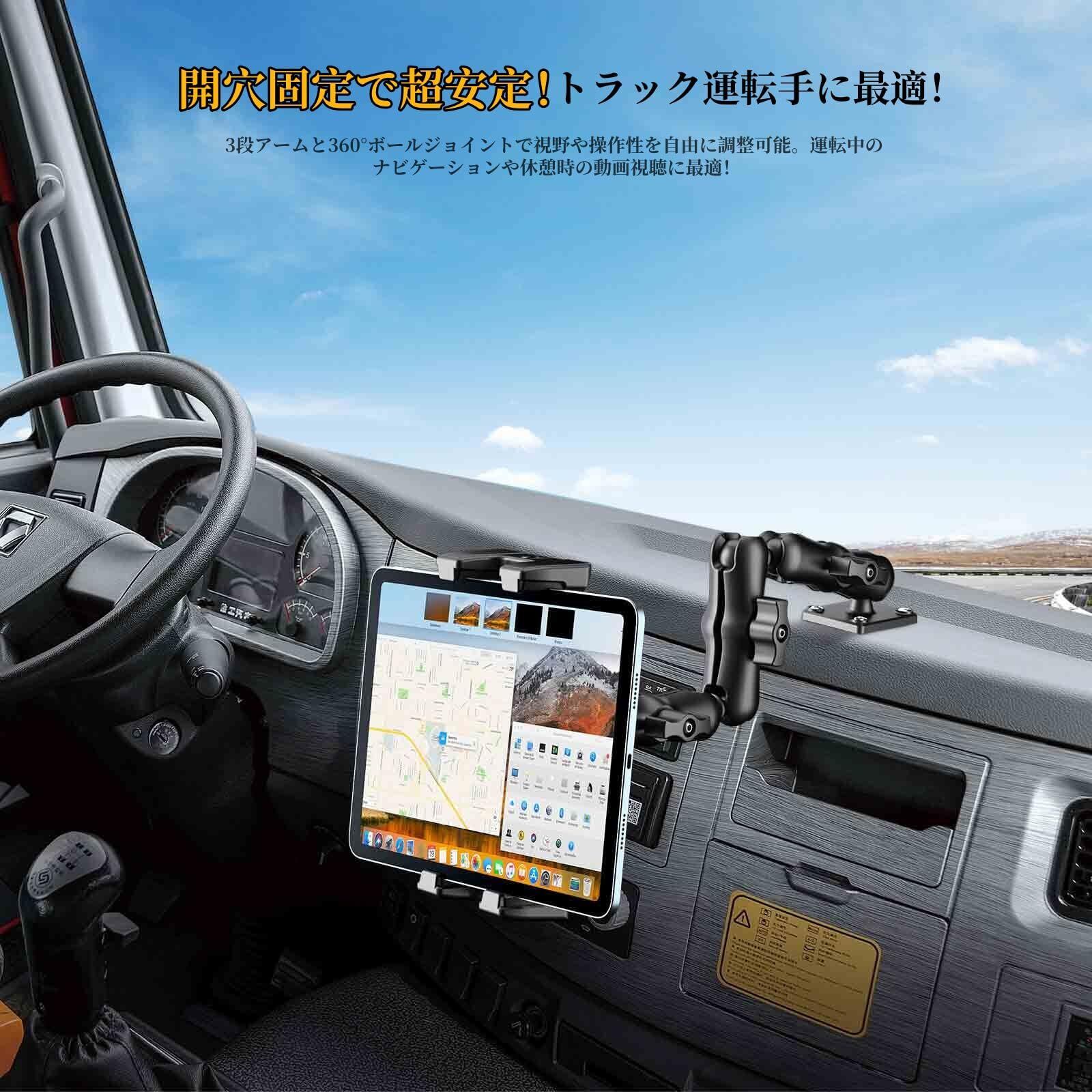 タブレットホルダー 車載 タブレットスタンド【穴あけ・三段式】デスク/壁取付 耐震設計 強力固定 多角度調節 5.4-13インチのスマホ&タブレットに対応可能 ipadスタンド