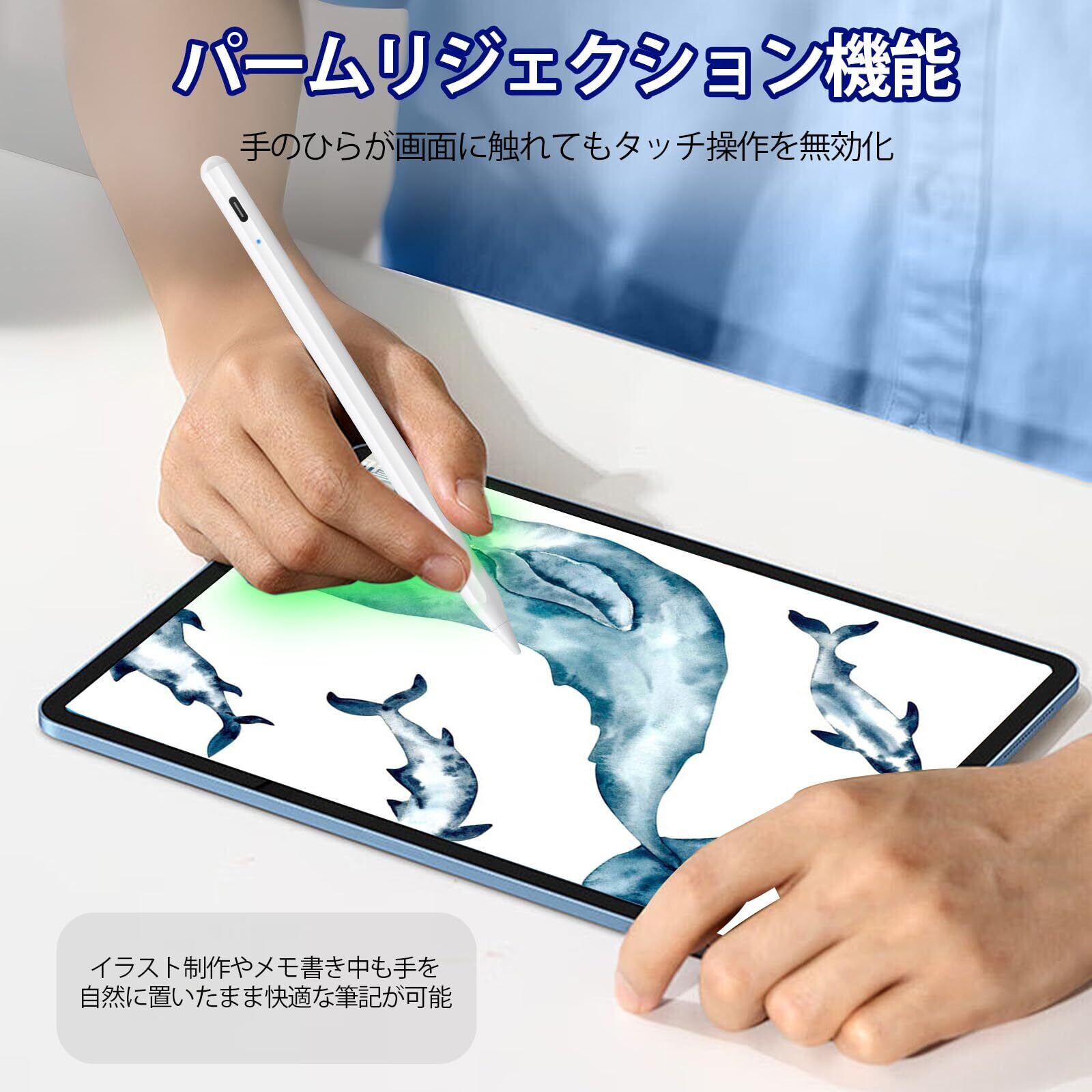 BLEBLE iPad ペンシル アップルペンシル 2018年~2024年 iPad対応 タッチペン超高感度、傾き感知/磁気吸着/誤操作防止、軽量、耐久性と耐摩耗性スタイラスType-C急速充電スタイラス、学生や子供の書き込み、ペイント、デザイン描画 ホワイト