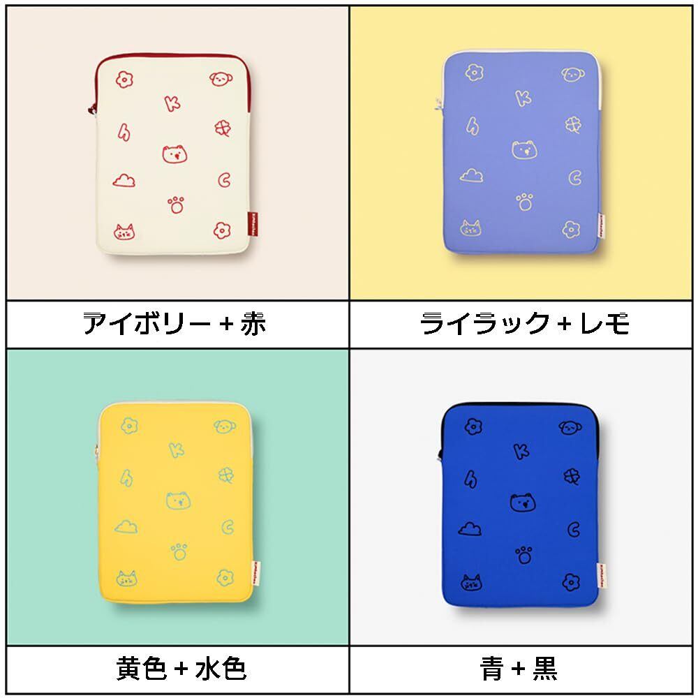 キムハチャン パフィー パターン ポーチ - タブレット【11インチ】 タブレットスリーブ 小物 (アイボリー+赤)