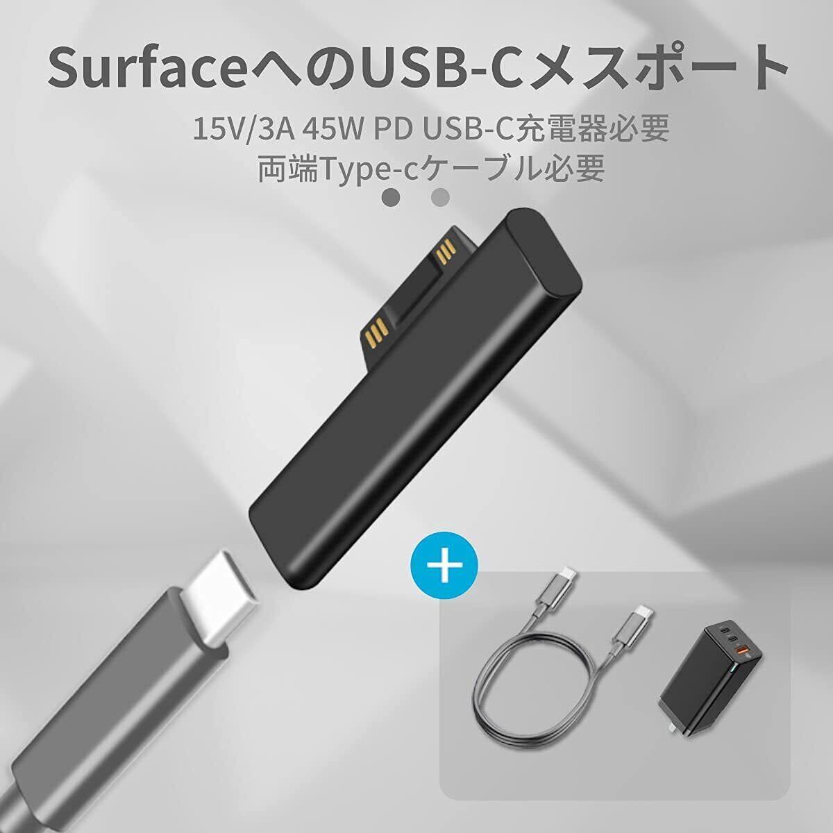Sisyphy USB-C to Surface 対応 充電アダプタ USB-C充電器45W以上が必要【15V/3A 45W 】【アダプタ】、マイクロソフト Surface Pro 7/6/5/4/3/X Surface Go1/2 Surface Laptop 1/2/3/4 Book タブレット対応