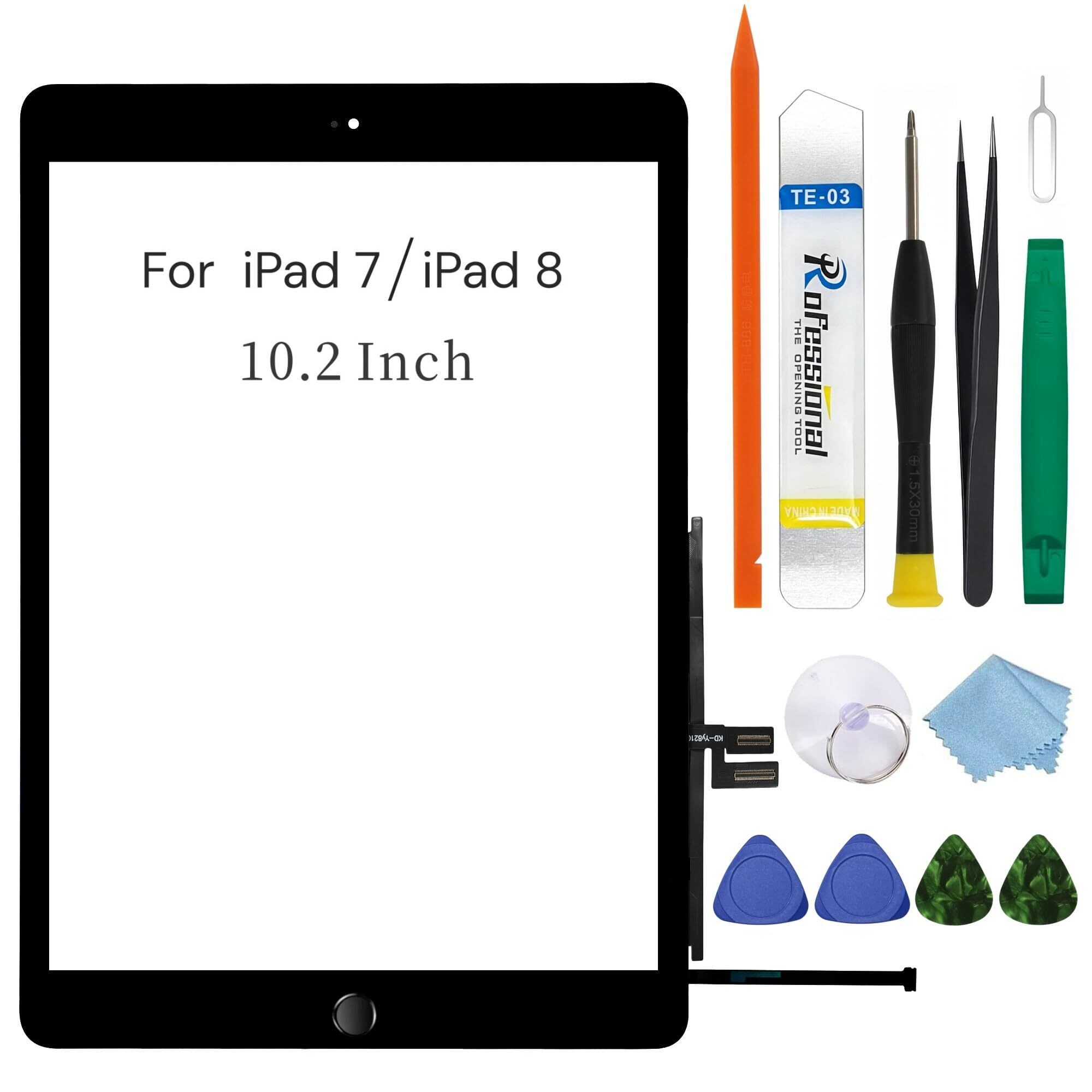 【2022最新】ブラック タッチパネル交換用 10.2インチ 2019 iPad 第7世代(A2197 A2198 A2200)/ 2020 iPad 第8世代(A2270 A2428 A2429 A2430)ガラスタッチデジタイザー 画面交換修理用、取り付け済み接着剤、ツール修理キット(ホームボタン付き)