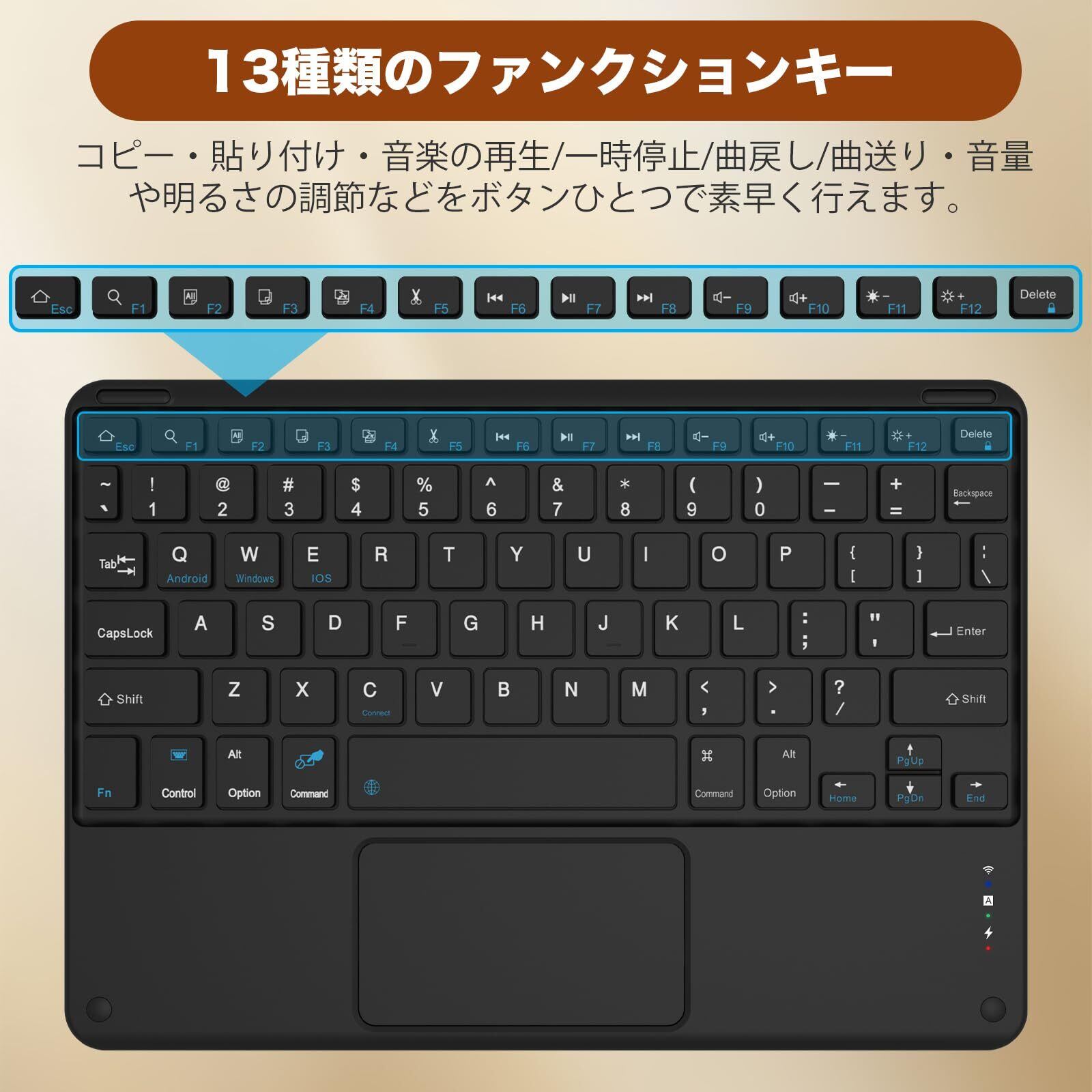 【アップデート版】タッチパッド付き Bluetooth ワイヤレスキーボード 充電式 薄型・軽量・静音 小型設計 iPad/MacBook/Androidタブレット/Windows対応 在宅ワーク・出張・外出先・学習用に最適 持ち運び便利 日本語説明書付き