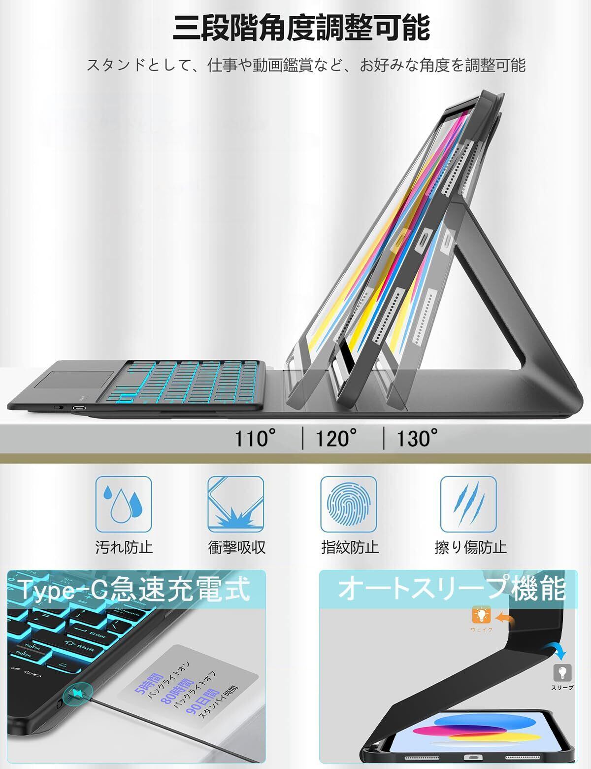 SENGBIRCH iPad a16 ケース キーボード付き 第11世代 11インチ対応 タッチパッド搭載 着脱式 iPad 10世代 キーボード ケース 10.9インチ 7色バックライト ペンホルダー付き 多角度調整 オートスリープ 耐衝撃 軽量 全面保護 type-c充電式 日本語取扱説明書 ブラック